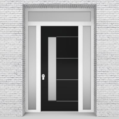 Single Door with Two Side Panels and Transom 4 Aluminium Inlays with Lock Side Glass Jet Black Security Doors