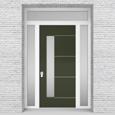 Single Door with Two Side Panels and Transom 4 Aluminium Inlays with Lock Side Glass Fir Green Security Doors