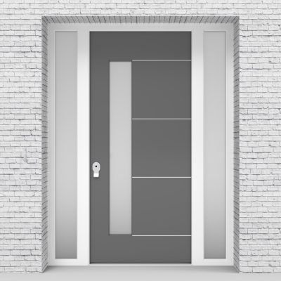 Single Door with Two Side Panels 4 Aluminium Inlays with Lock Side Glass Signal Grey Security Doors