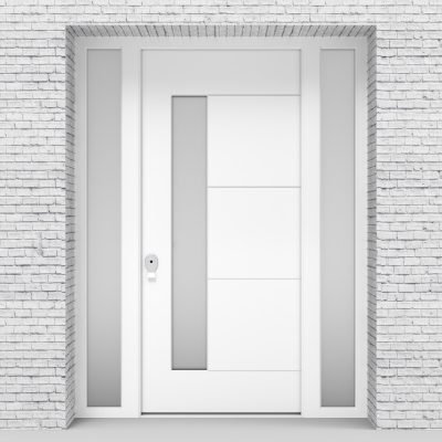 Single Door with Two Side Panels 4 Aluminium Inlays with Lock Side Glass Traffic White Security Doors