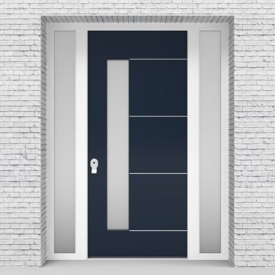 Single Door with Two Side Panels 4 Aluminium Inlays with Lock Side Glass Sapphire Blue Security Doors