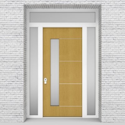Single Door with Two Side Panels and Transom 4 Aluminium Inlays with Lock Side Glass Birch Security Doors