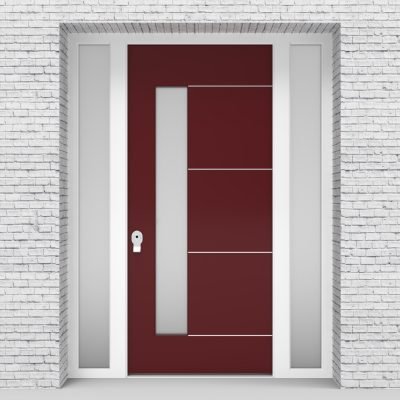 Single Door with Two Side Panels 4 Aluminium Inlays with Lock Side Glass Ruby Red Security Doors