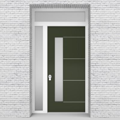 Single Door with Left Side Panel and Transom 4 Aluminium Inlays with Lock Side Glass Fir Green Security Doors