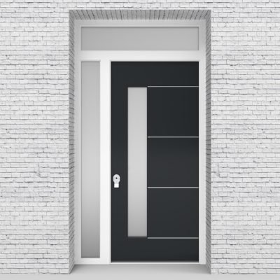 Single Door with Left Side Panel and Transom 4 Aluminium Inlays with Lock Side Glass Anthracite Grey Security Doors