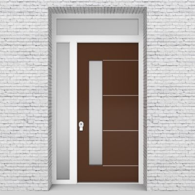Single Door with Left Side Panel and Transom 4 Aluminium Inlays with Lock Side Glass Clay Brown Security Doors