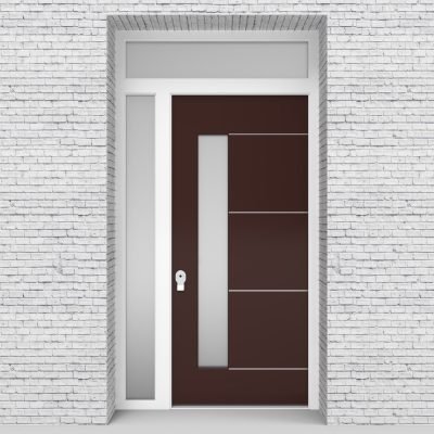 Single Door with Left Side Panel and Transom 4 Aluminium Inlays with Lock Side Glass Chocolate Brown Security Doors