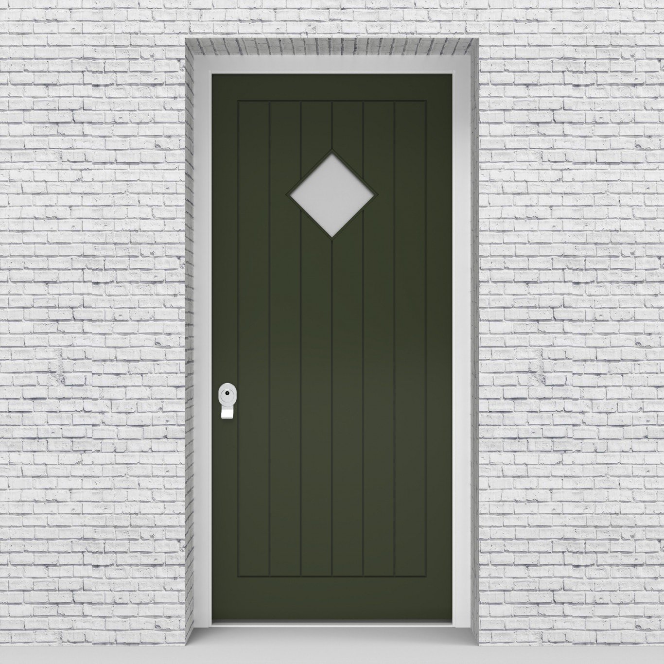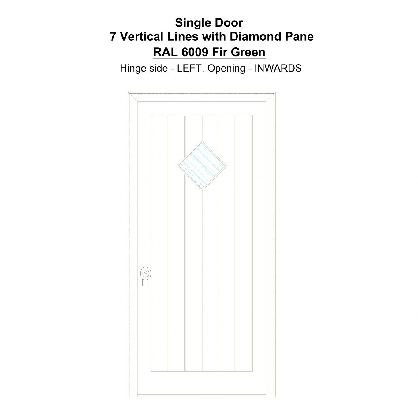 Single 7 Vertical Lines with Diamond Pane Fir Green Security Doors