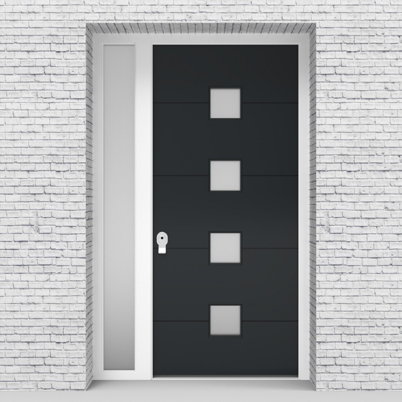 Single Door with Left Side Panel 4 Horizontal Lines with 4 Glass Squares Anthracite Grey Security Doors