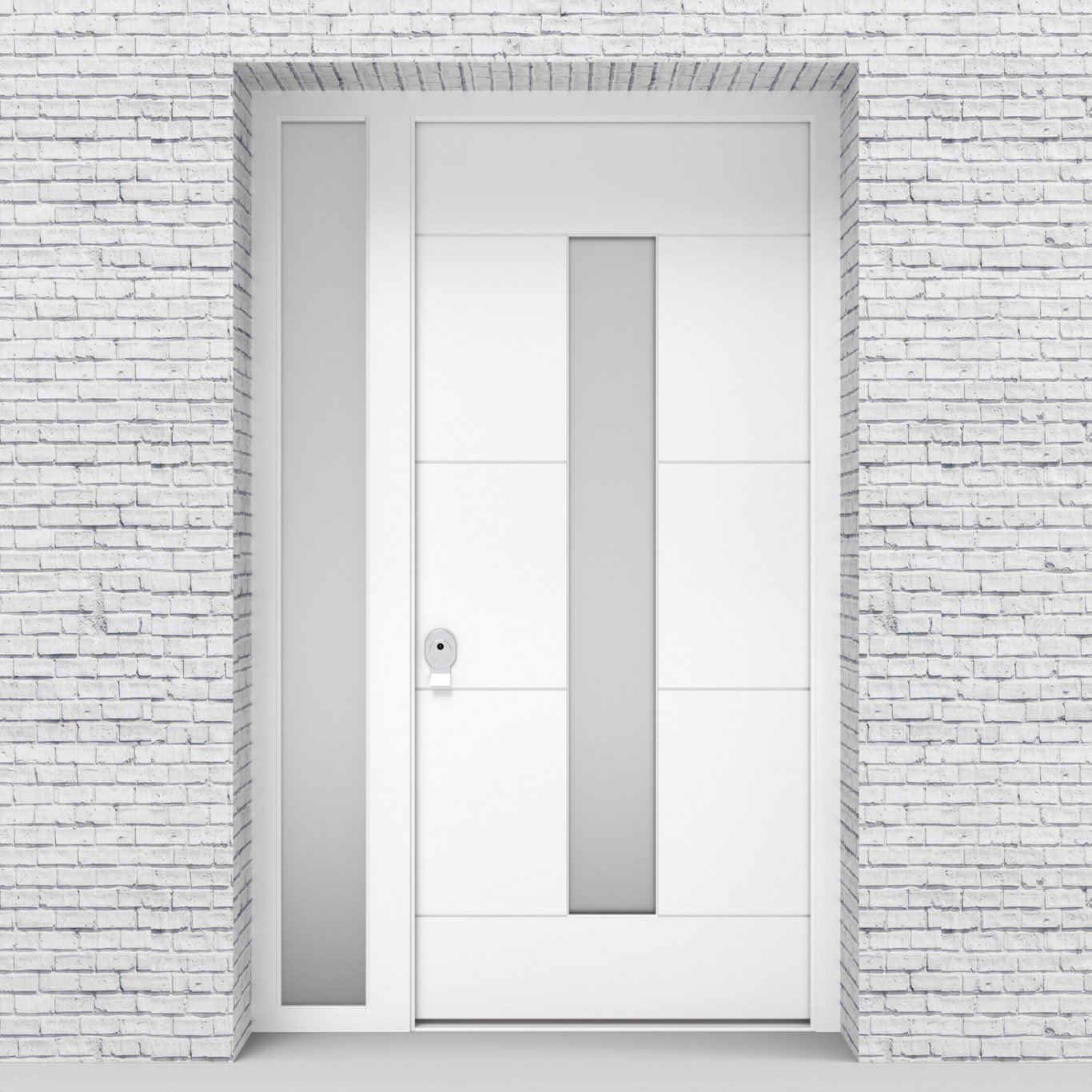 Single Door with Left Side Panel 4 Horizontal Lines with Central Glass Traffic White Security Doors