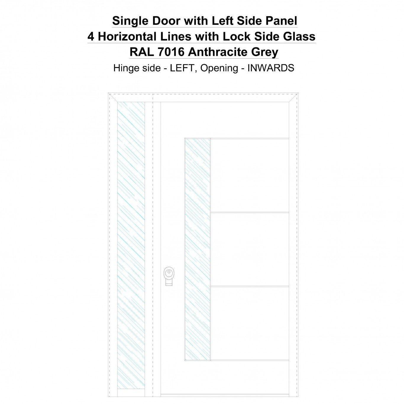 Single Door with Left Side Panel 4 Horizontal Lines with Lock Side Glass Anthracite Grey Security Doors