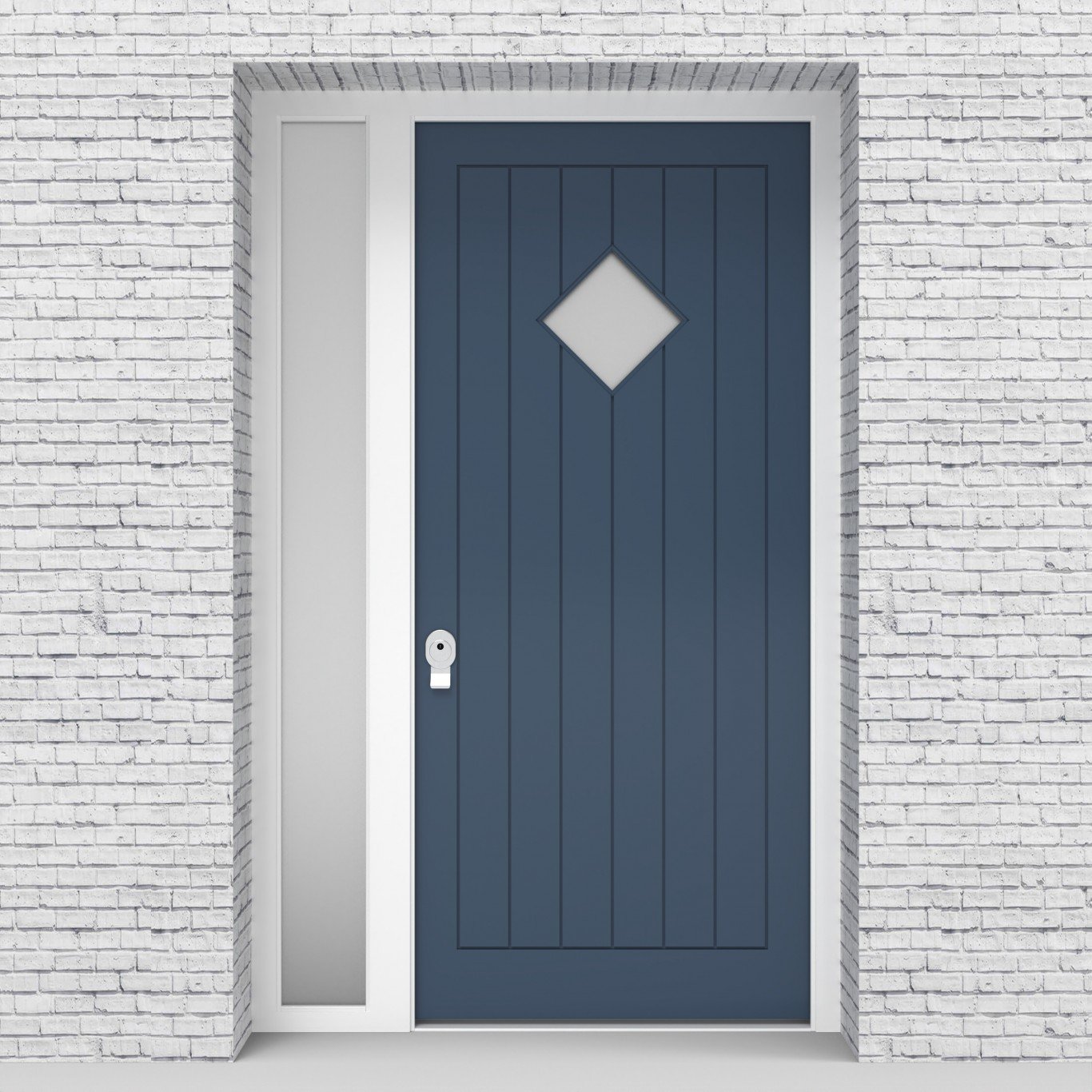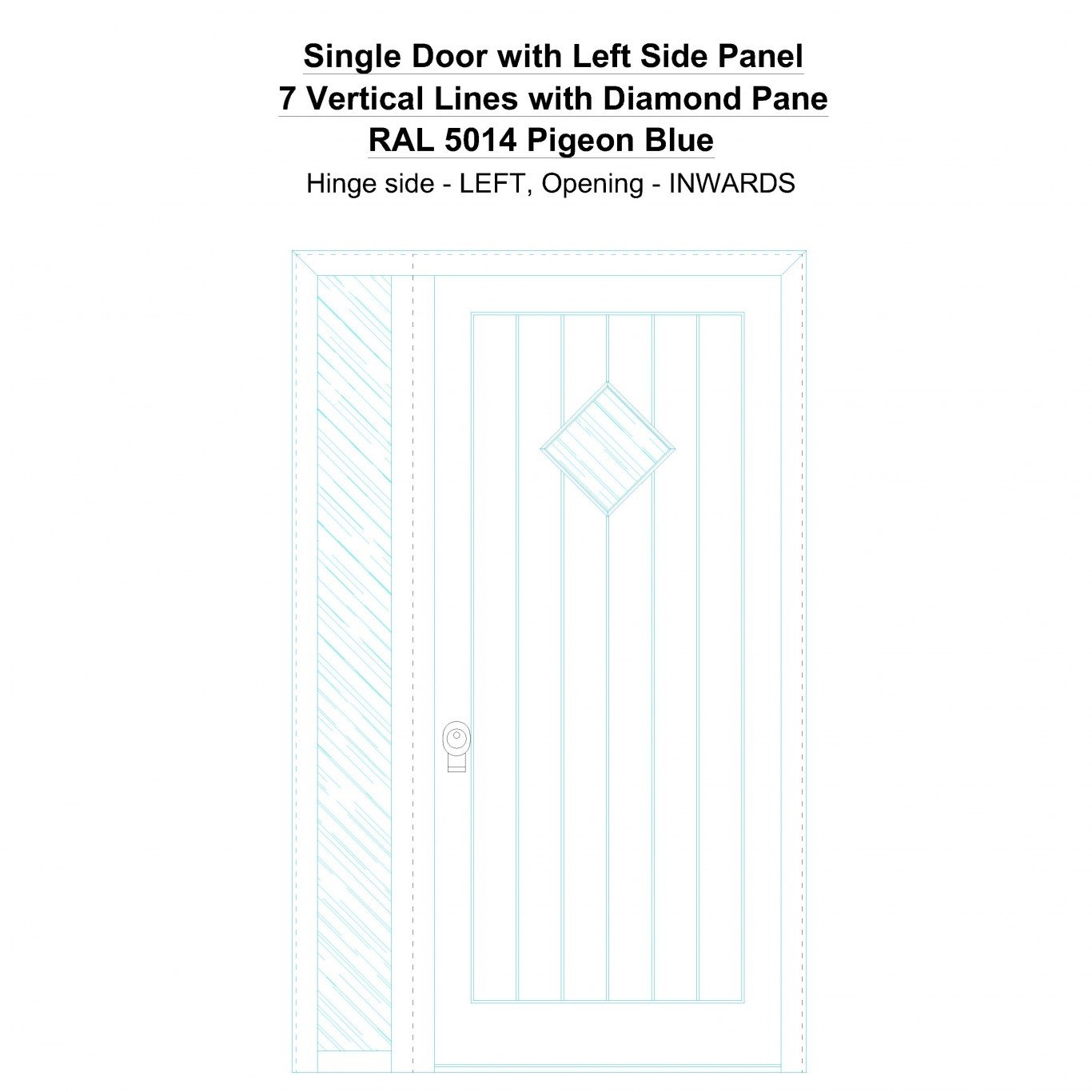 Single Door with Left Side Panel 7 Vertical Lines with Diamond Pane Pigeon Blue Security Doors