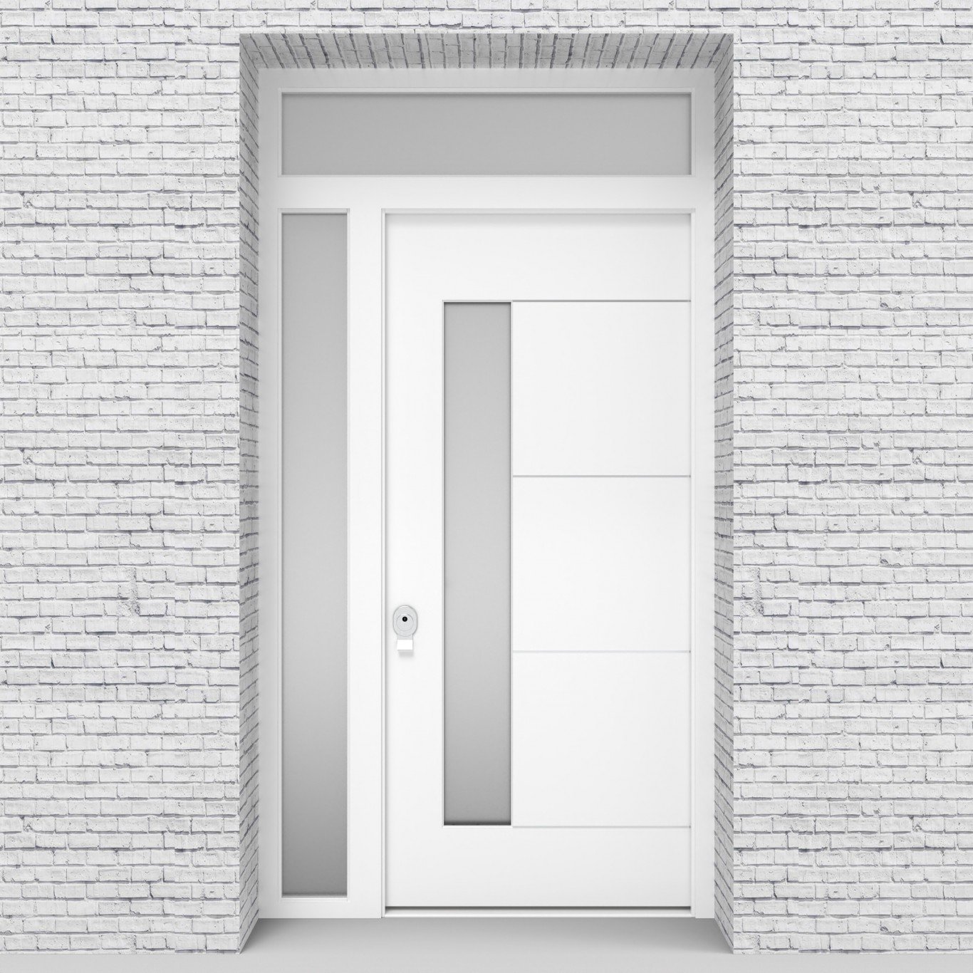 Single Door with Left Side Panel and Transom 4 Aluminium Inlays with Lock Side Glass Traffic White Security Doors