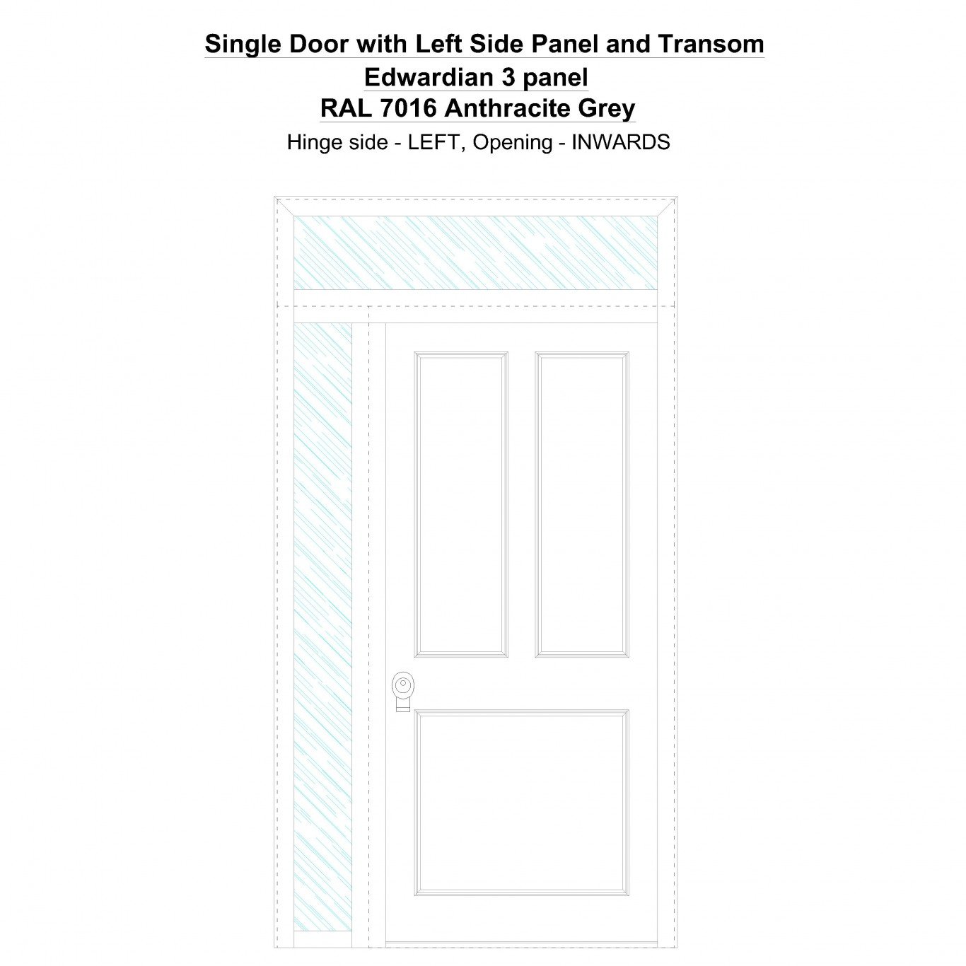 Single Door with Left Side Panel and Transom Edwardian 3 panel Anthracite Grey Security Doors