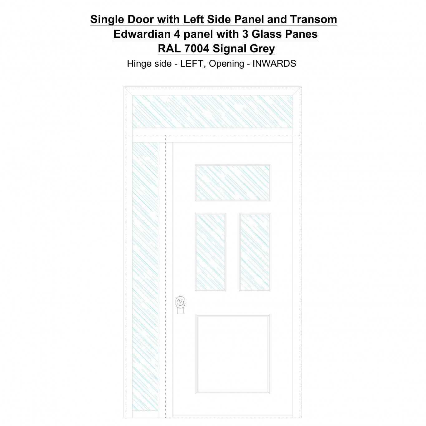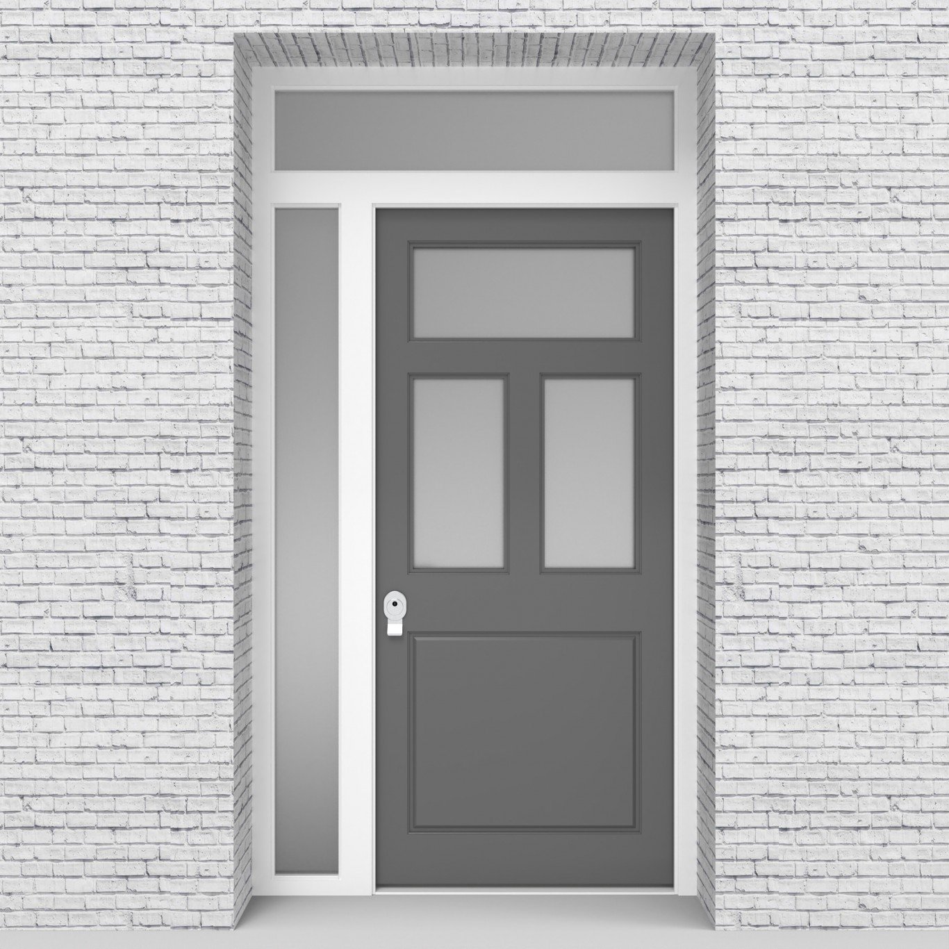 Single Door with Left Side Panel and Transom Edwardian 4 panel with 3 Glass Panes Signal Grey Security Doors