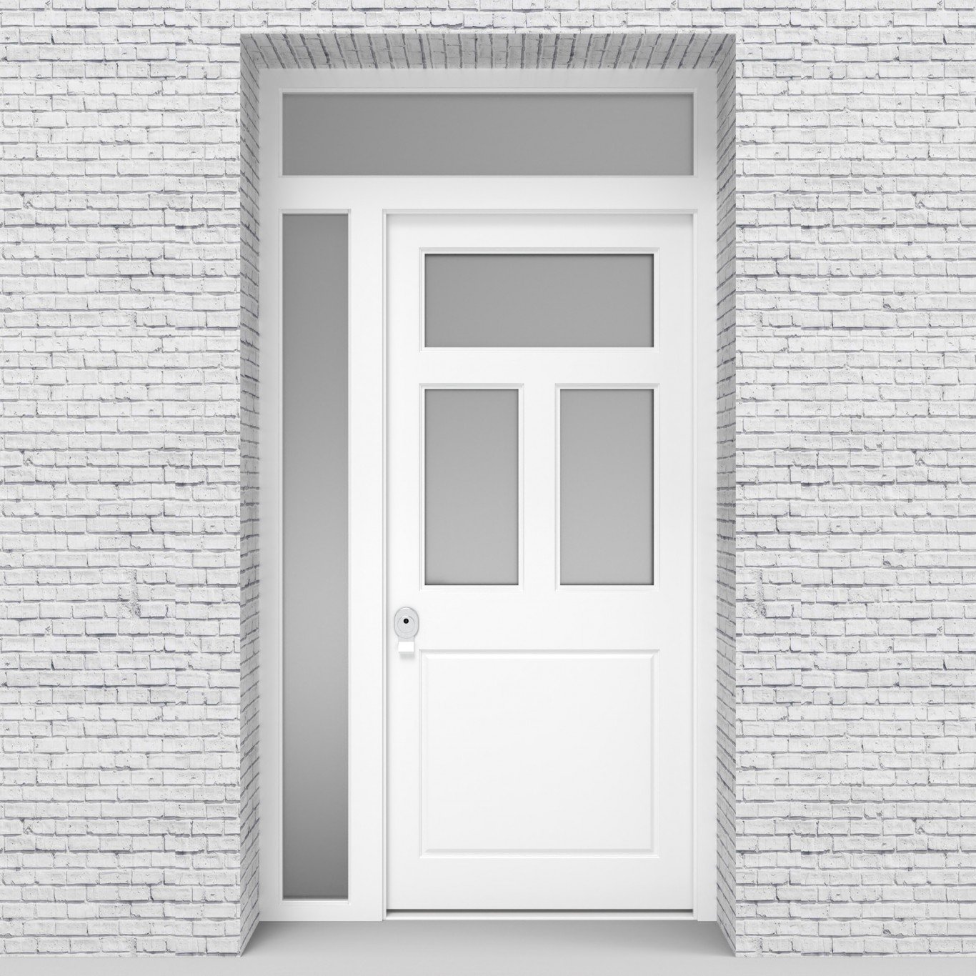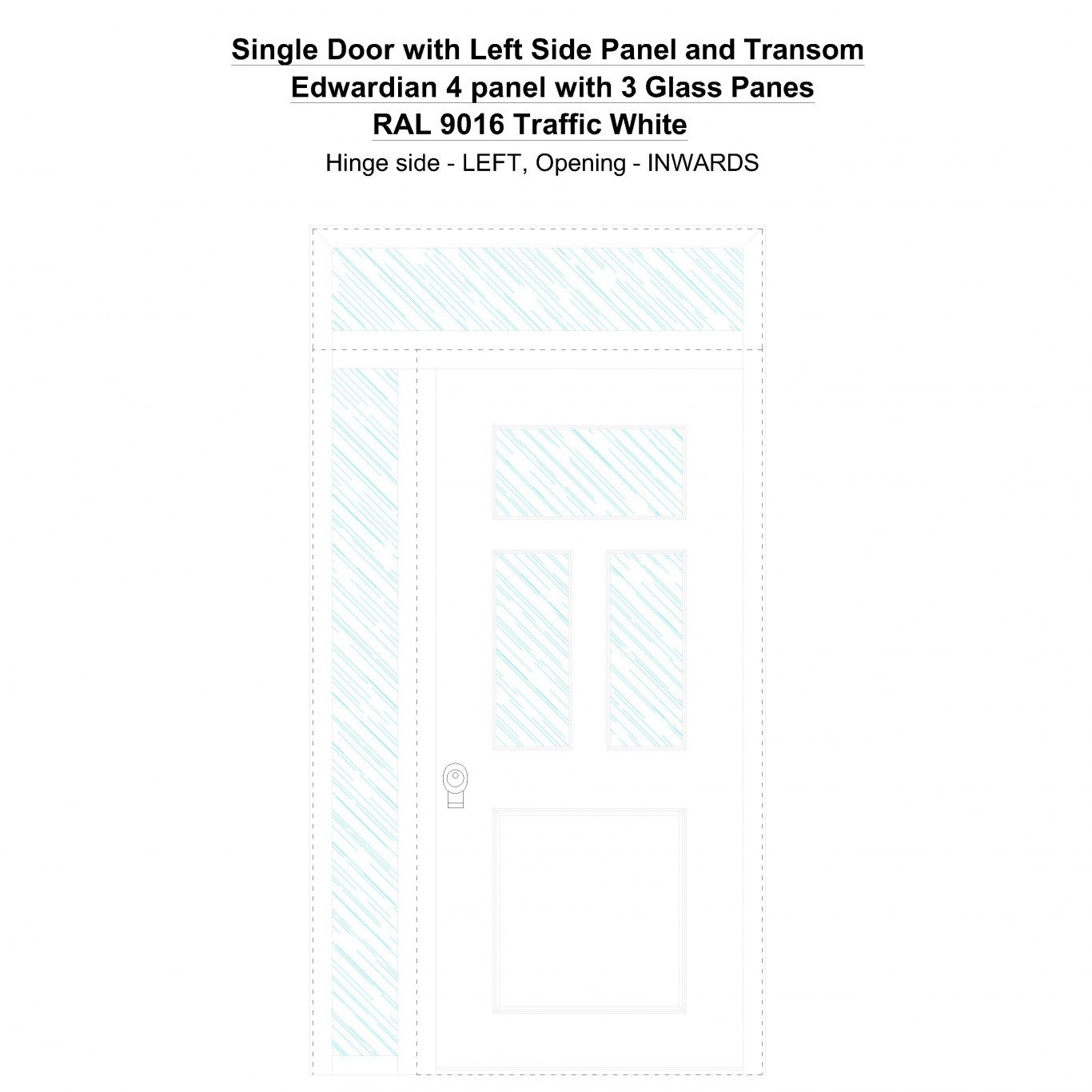 Single Door with Left Side Panel and Transom Edwardian 4 panel with 3 Glass Panes Traffic White Security Doors