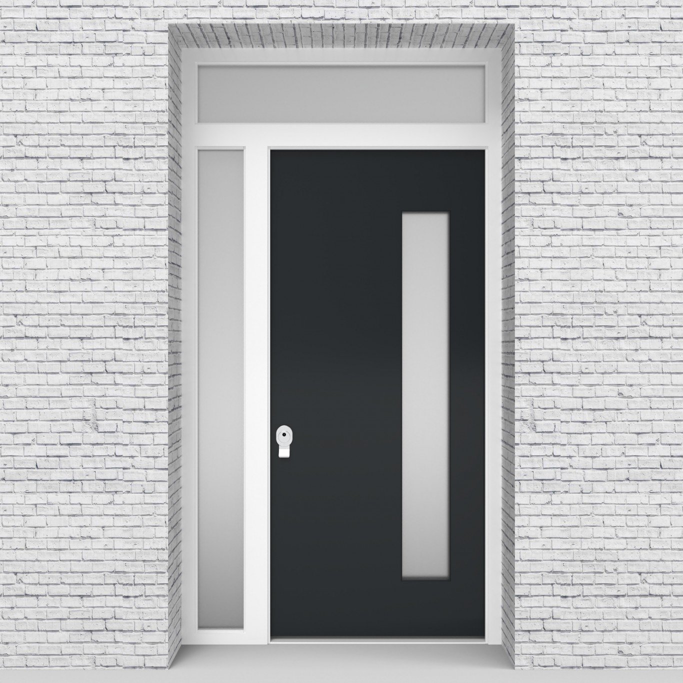 Single Door with Left Side Panel and Transom Plain with Hinge Side Glass Anthracite Grey Security Doors