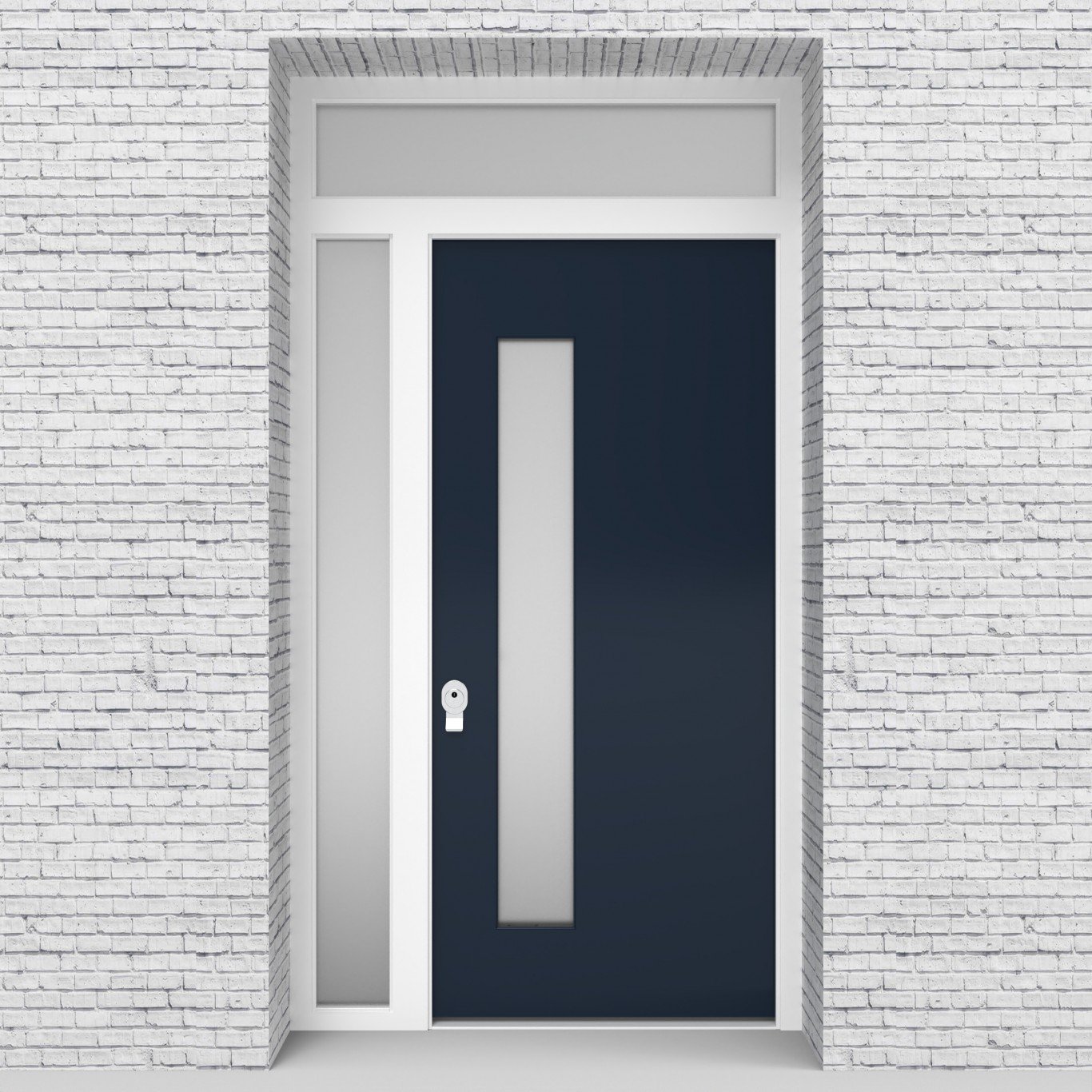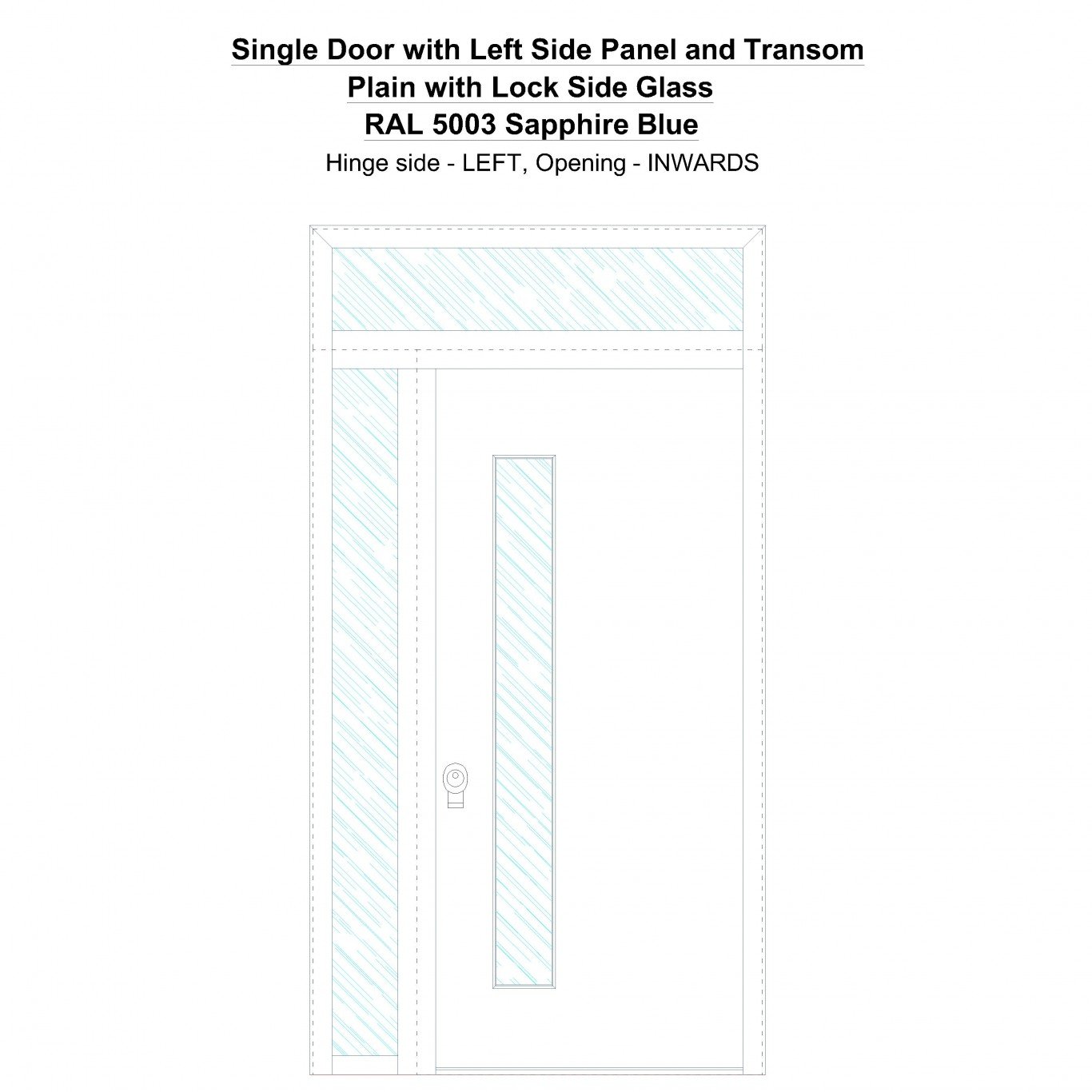 Single Door with Left Side Panel and Transom Plain with Lock Side Glass Sapphire Blue Security Doors