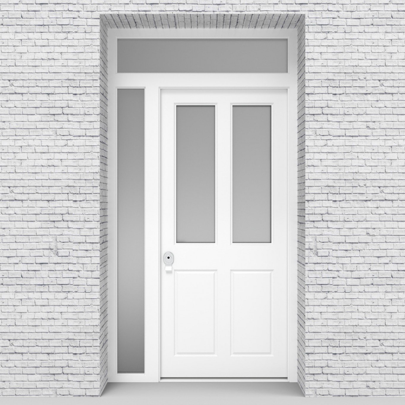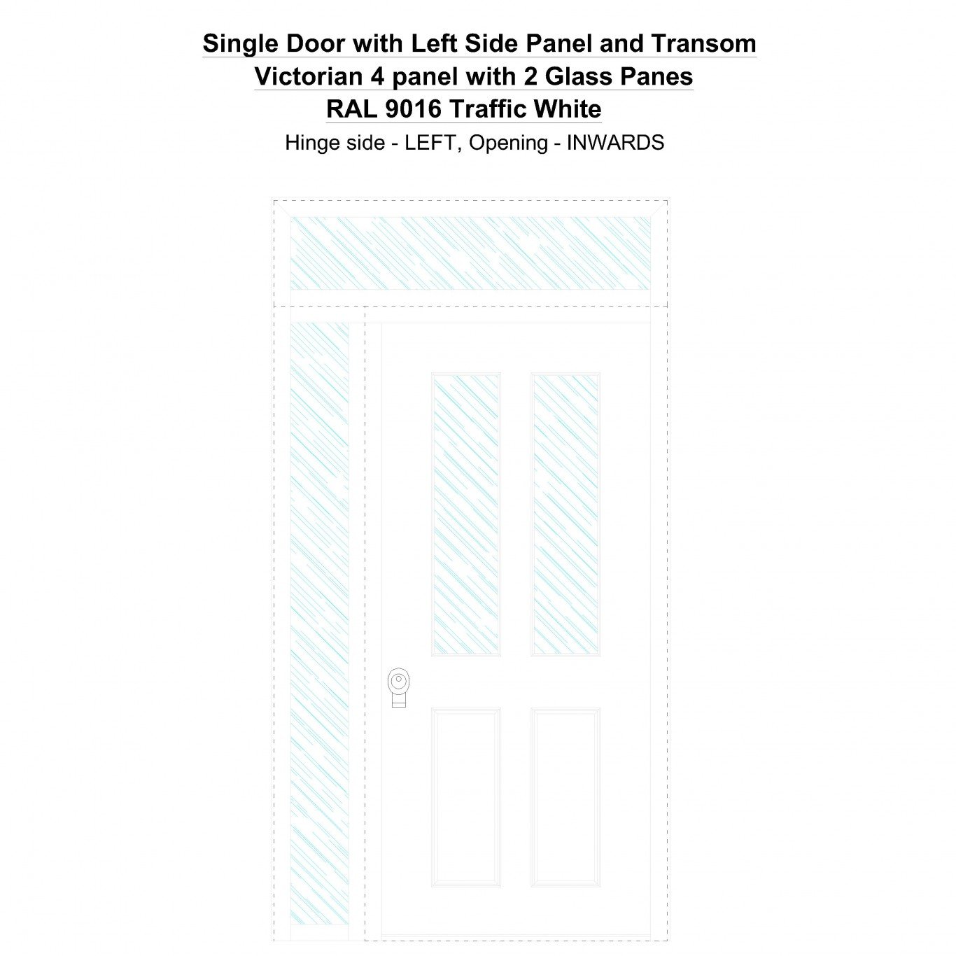 Single Door with Left Side Panel and Transom Victorian 4 panel with 2 Glass Panes Traffic White Security Doors