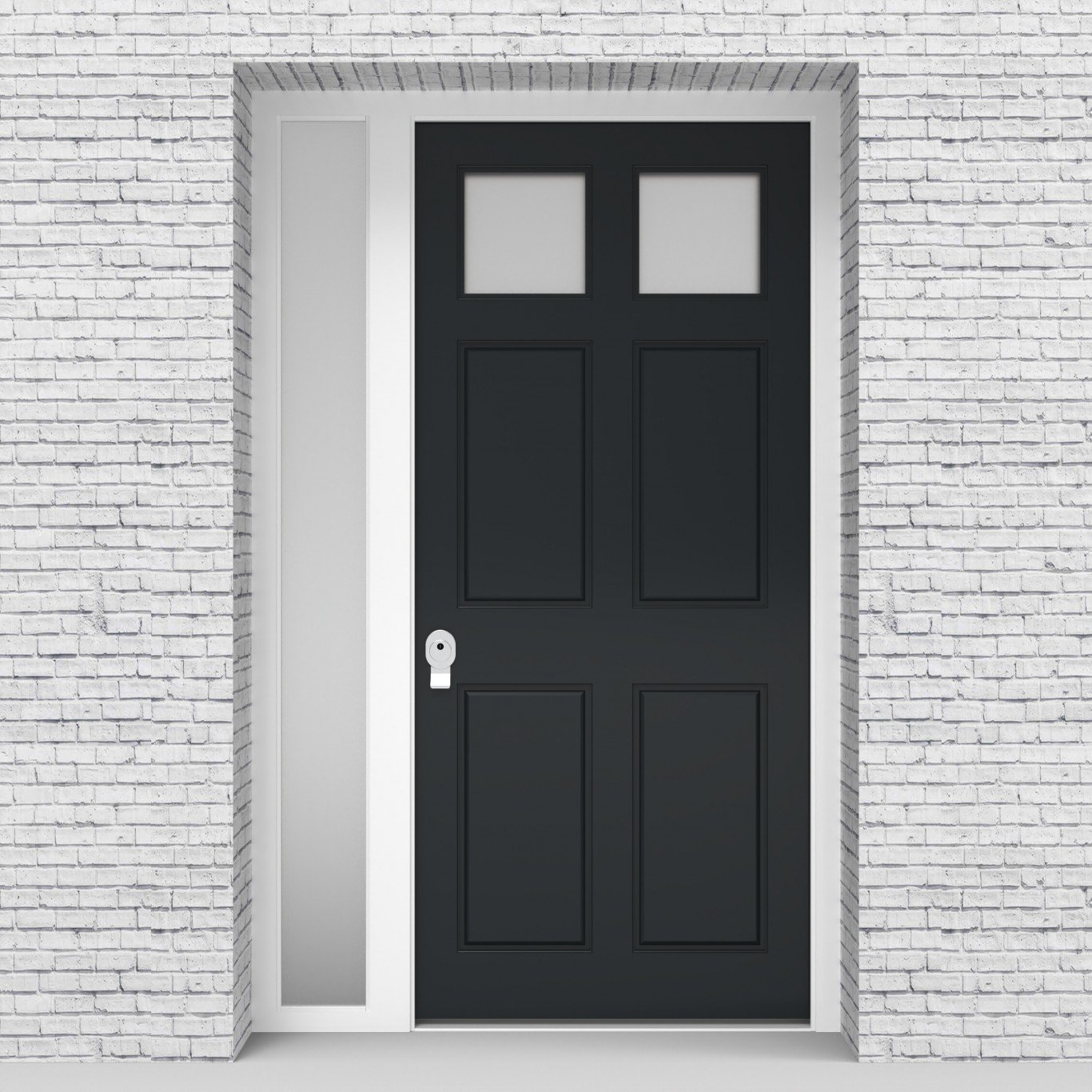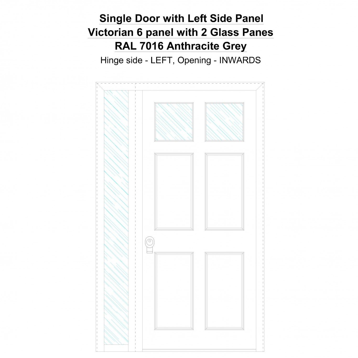 Single Door with Left Side Panel Victorian 6 panel with 2 Glass Panes Anthracite Grey Security Doors