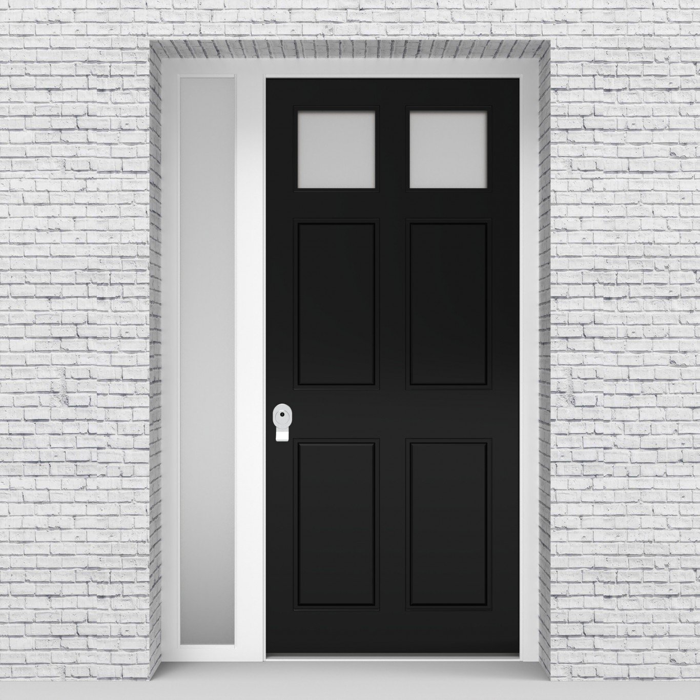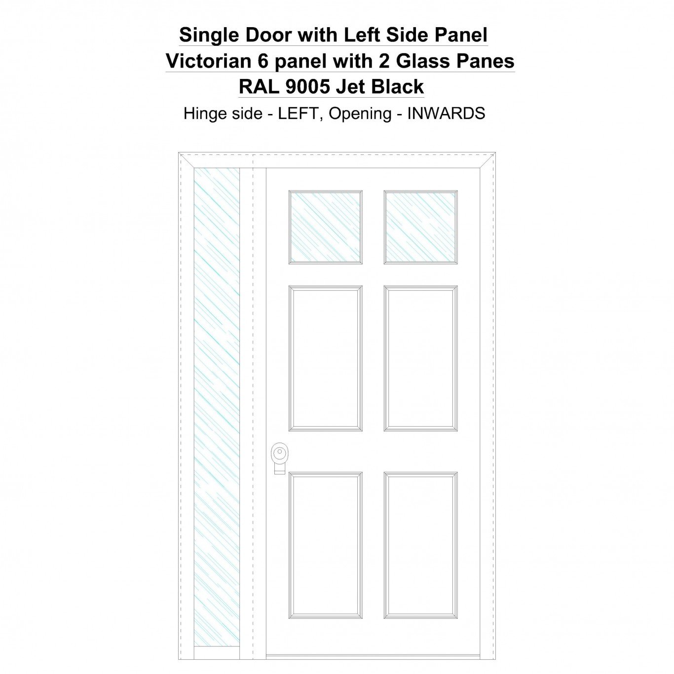 Single Door with Left Side Panel Victorian 6 panel with 2 Glass Panes Jet Black Security Doors
