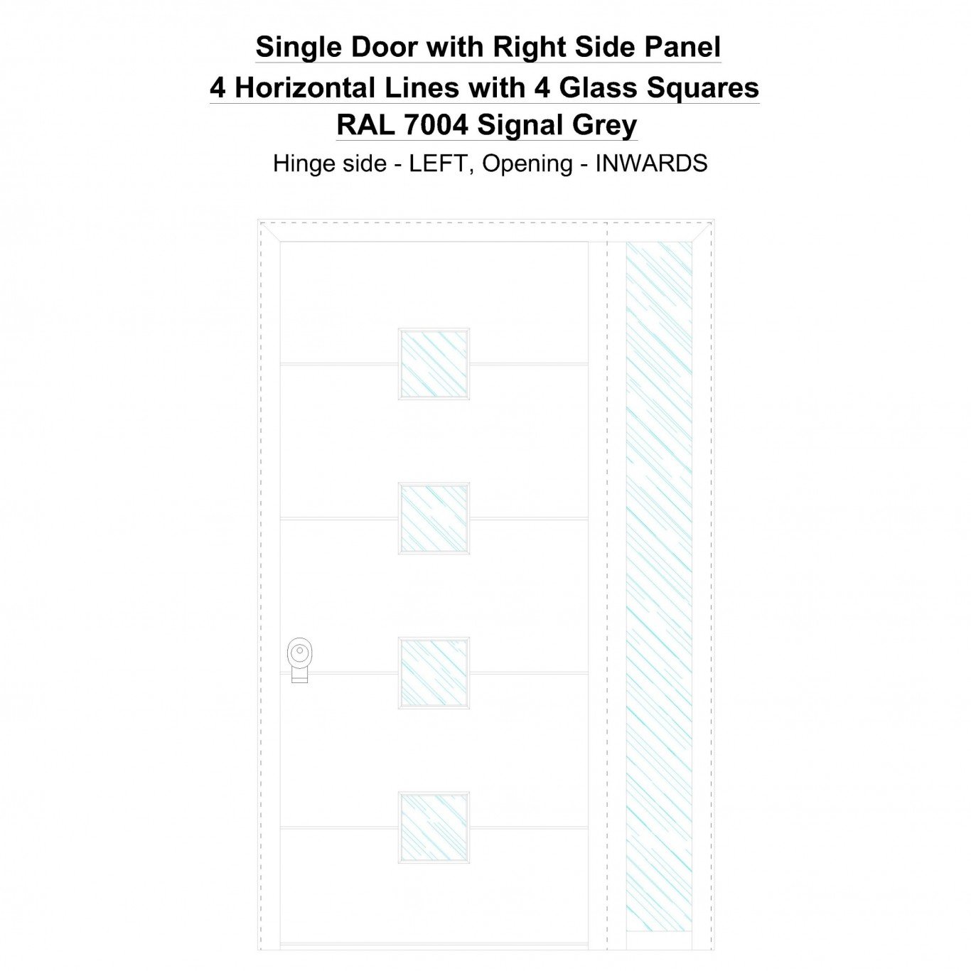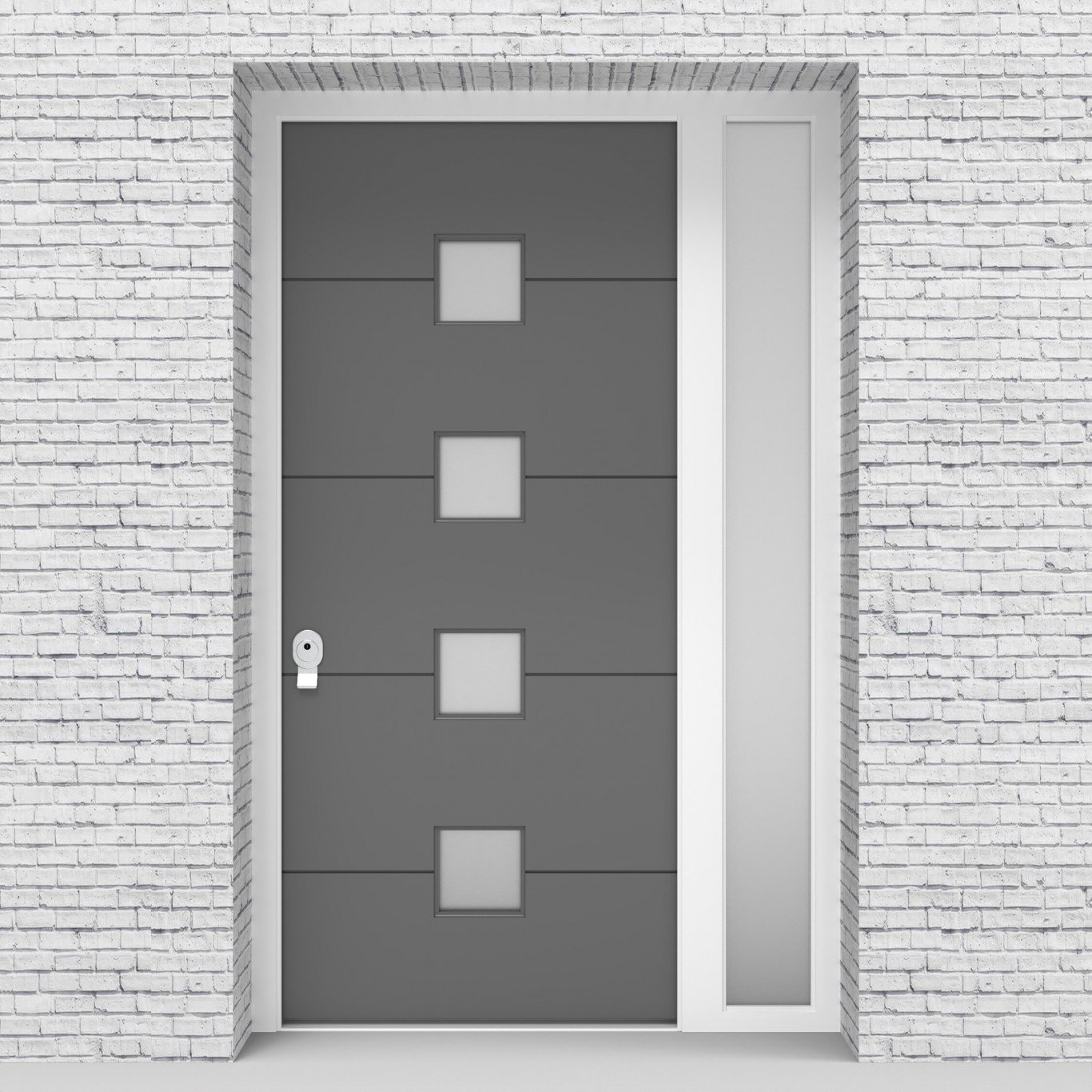 Single Door with Right Side Panel 4 Horizontal Lines with 4 Glass Squares Signal Grey Security Doors