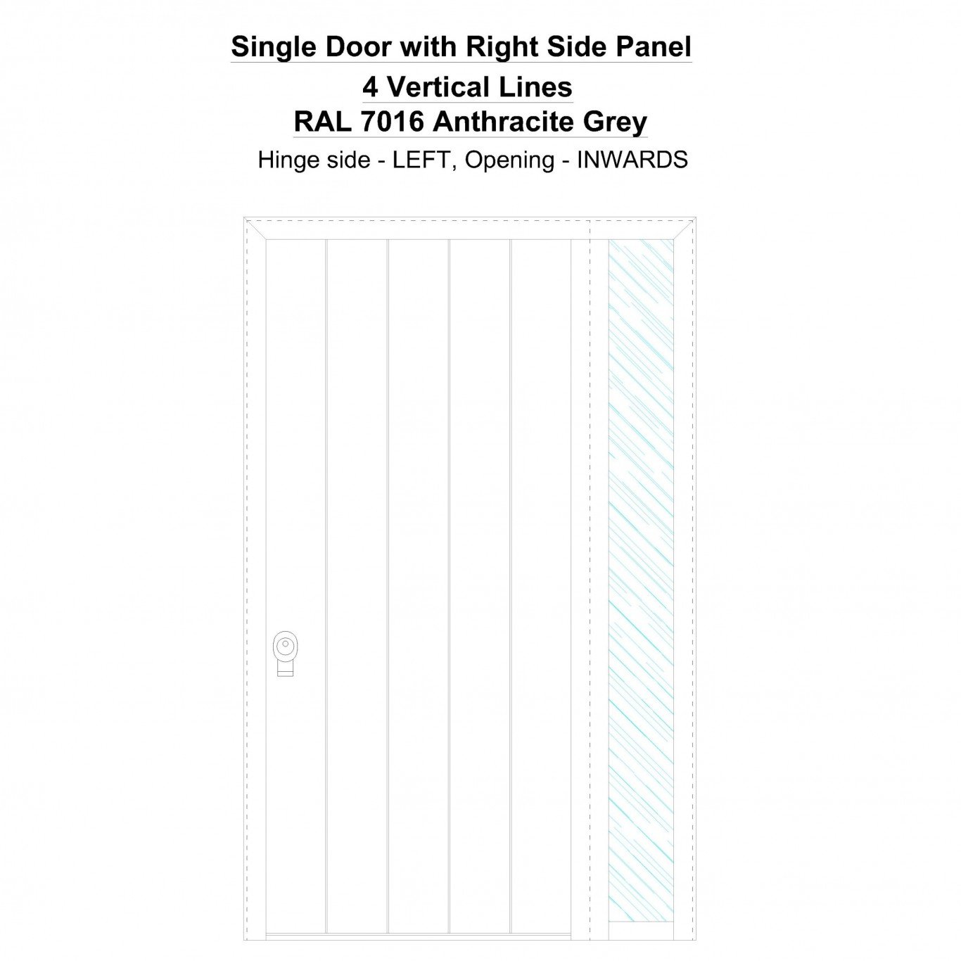 Single Door with Right Side Panel 4 Vertical Lines Anthracite Grey Security Doors