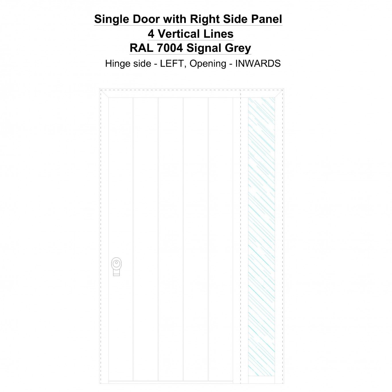 Single Door with Right Side Panel 4 Vertical Lines Signal Grey Security Doors