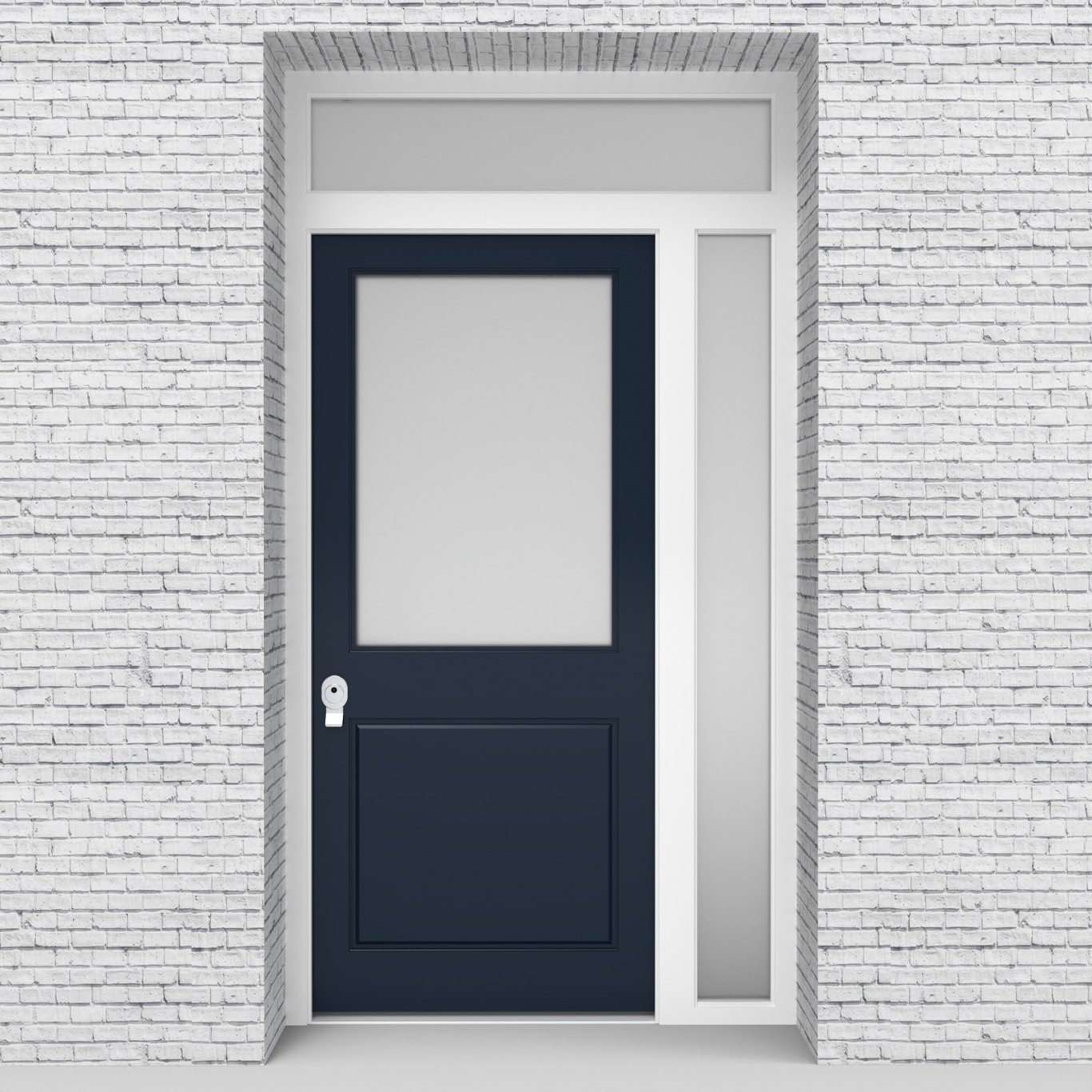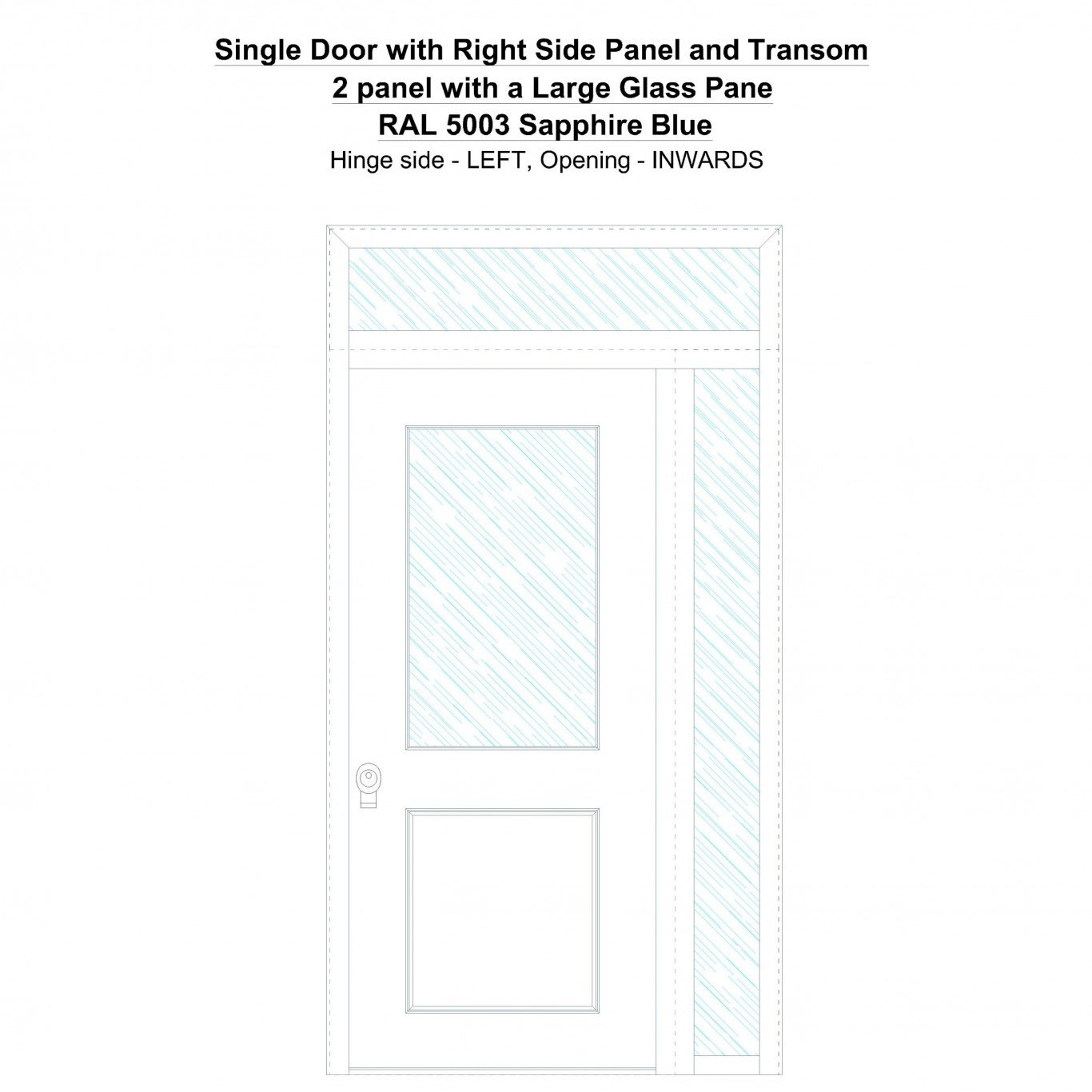 Single Door with Right Side Panel and Transom 2 panel with a Large Glass Pane Sapphire Blue Security Doors