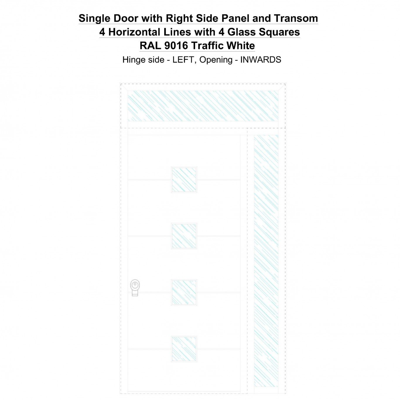 Single Door with Right Side Panel and Transom 4 Horizontal Lines with 4 Glass Squares Traffic White Security Doors