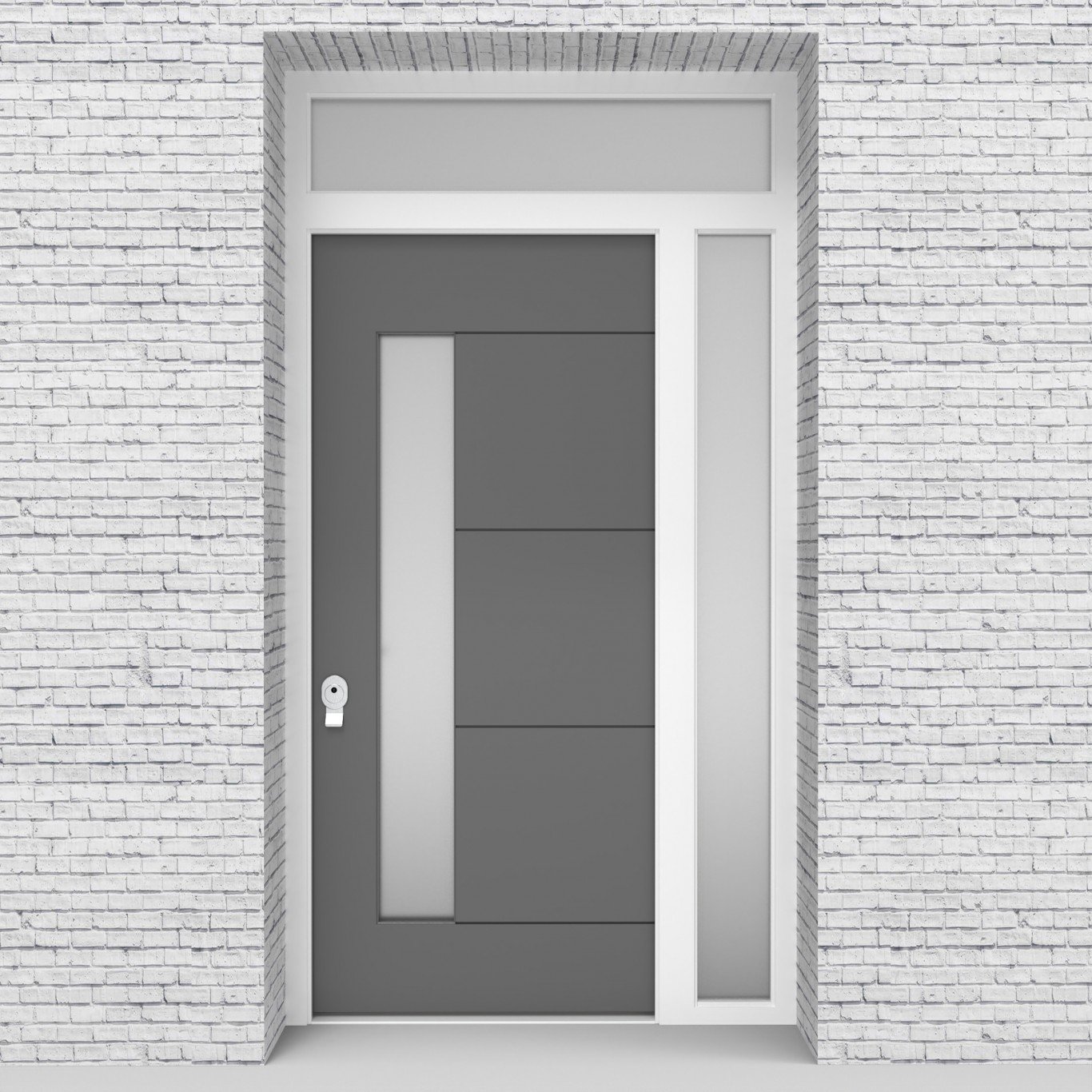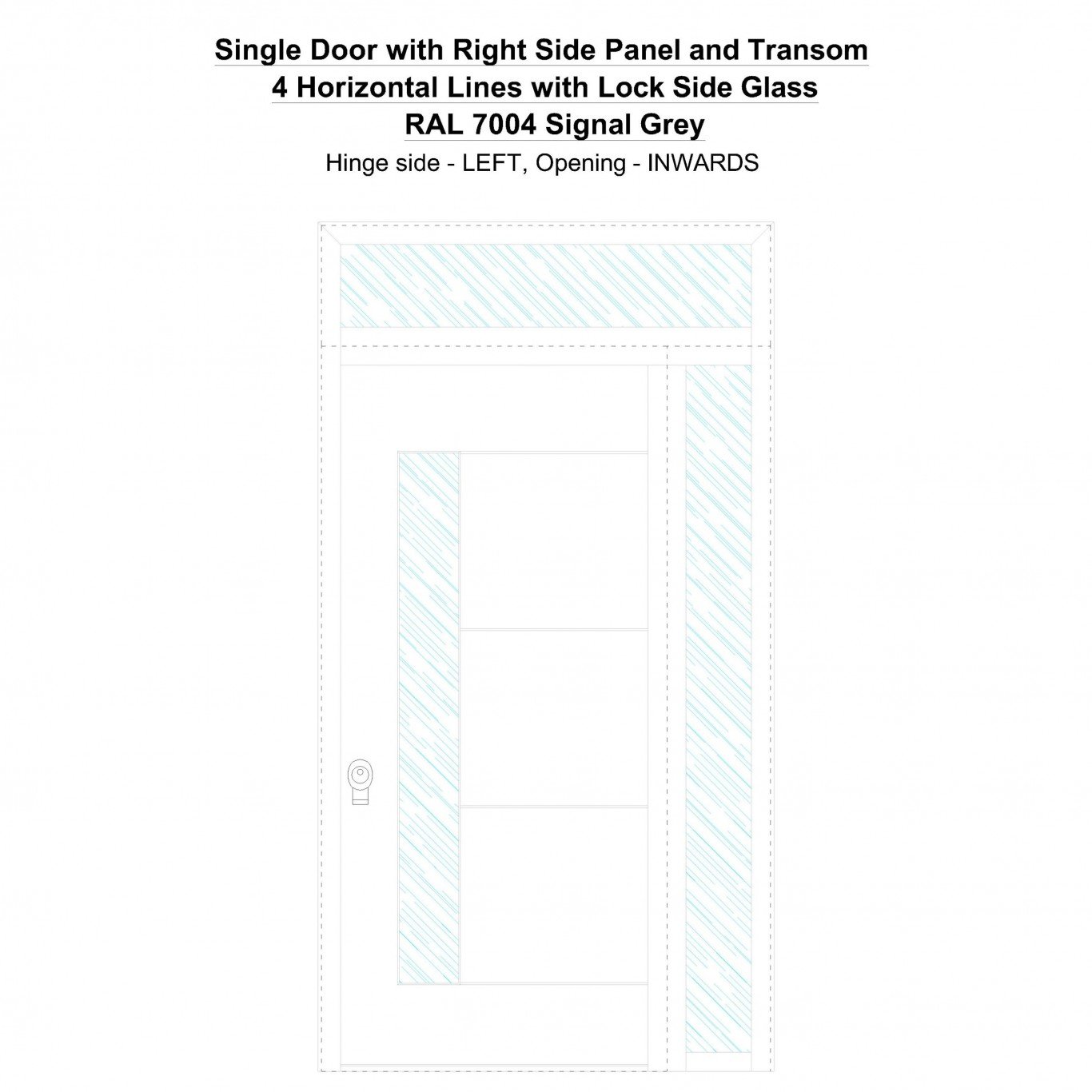 Single Door with Right Side Panel and Transom 4 Horizontal Lines with Lock Side Glass Signal Grey Security Doors