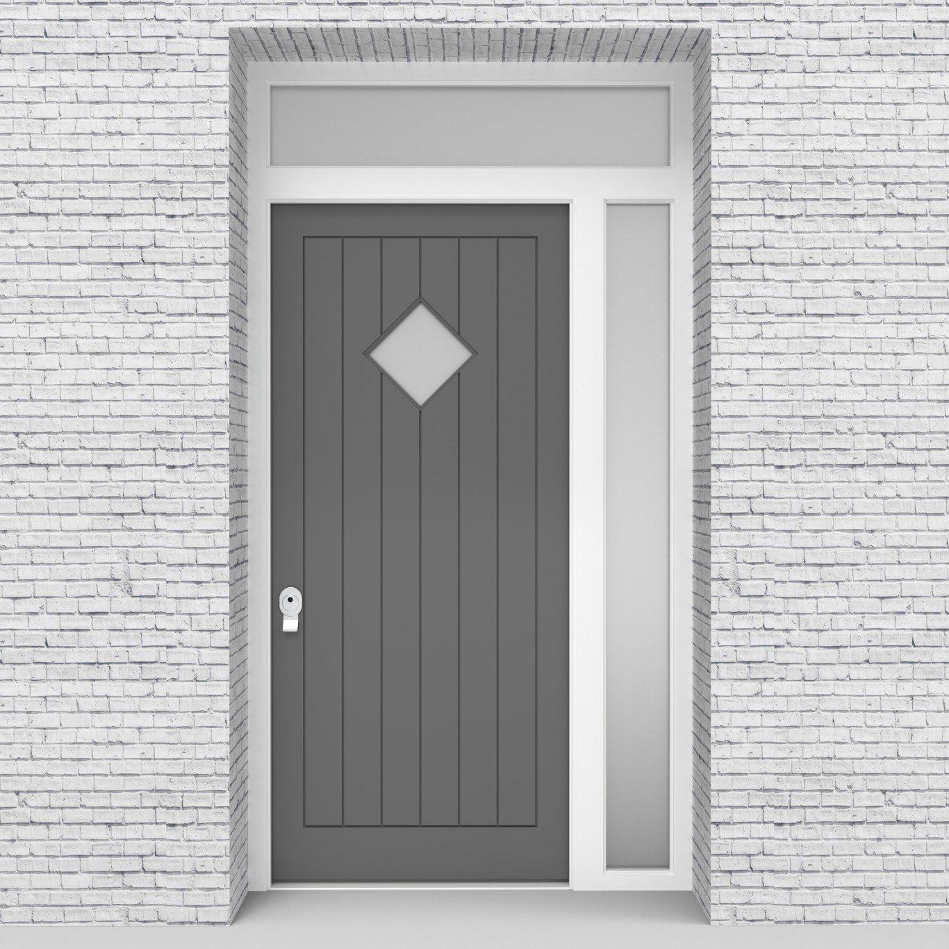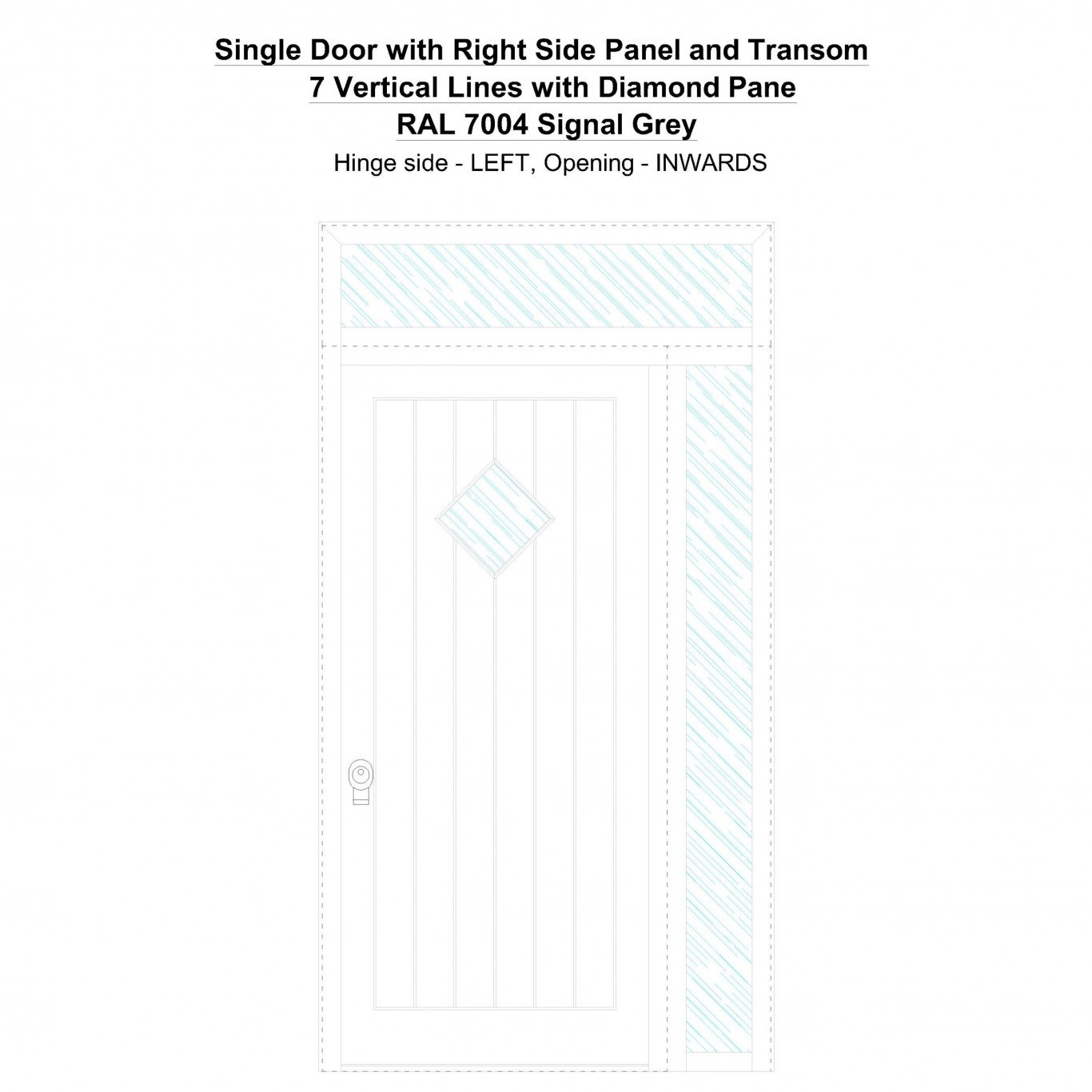 Single Door with Right Side Panel and Transom 7 Vertical Lines with Diamond Pane Signal Grey Security Doors