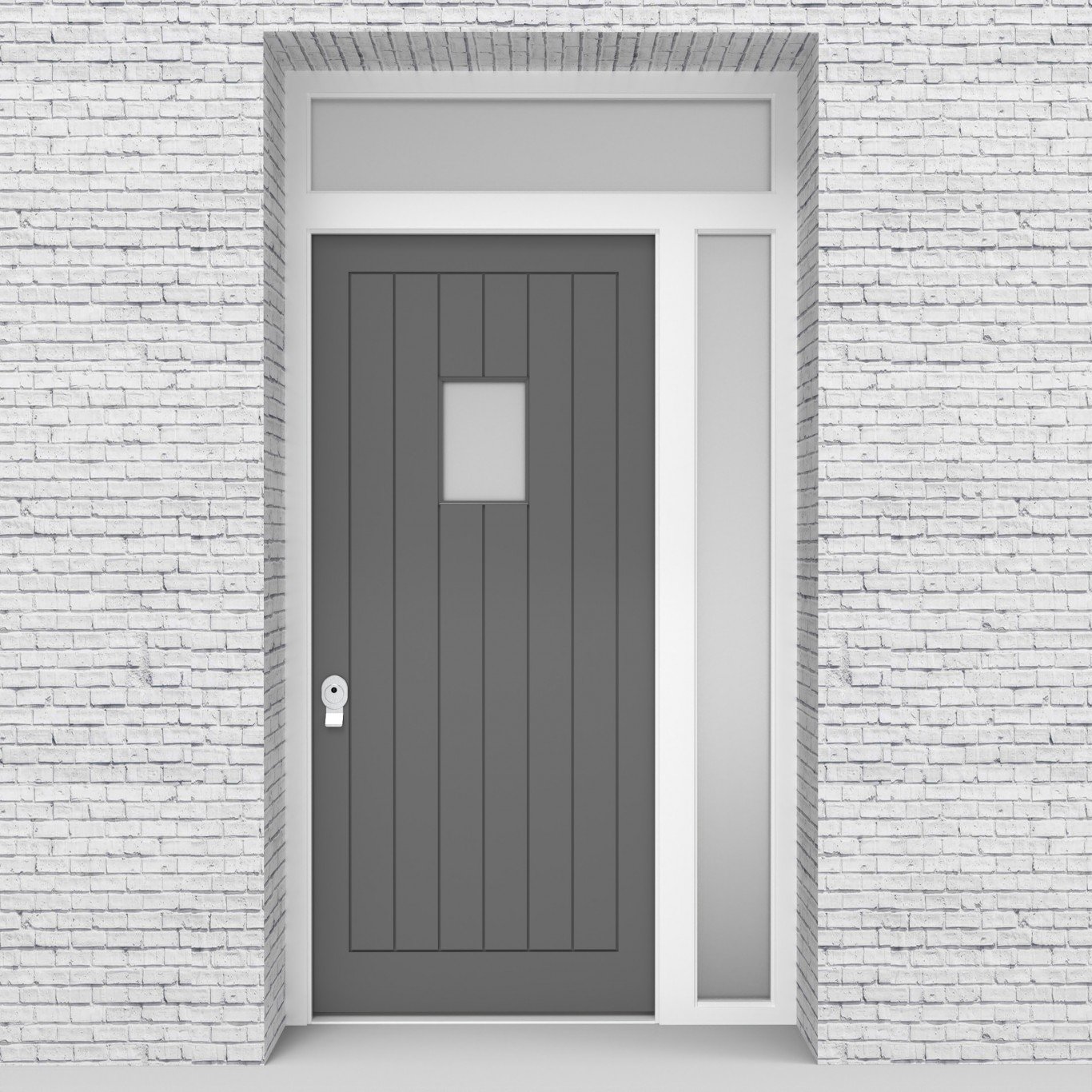 Single Door with Right Side Panel and Transom 7 Vertical Lines with Rectangle Pane Signal Grey Security Doors