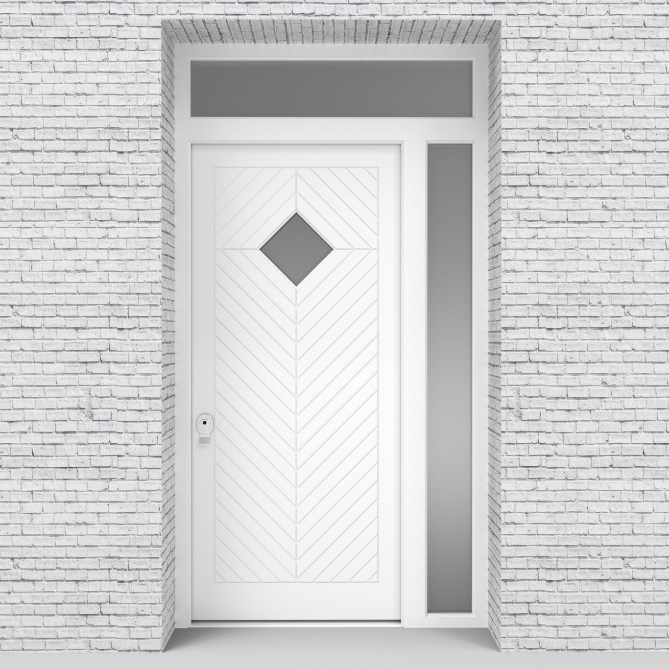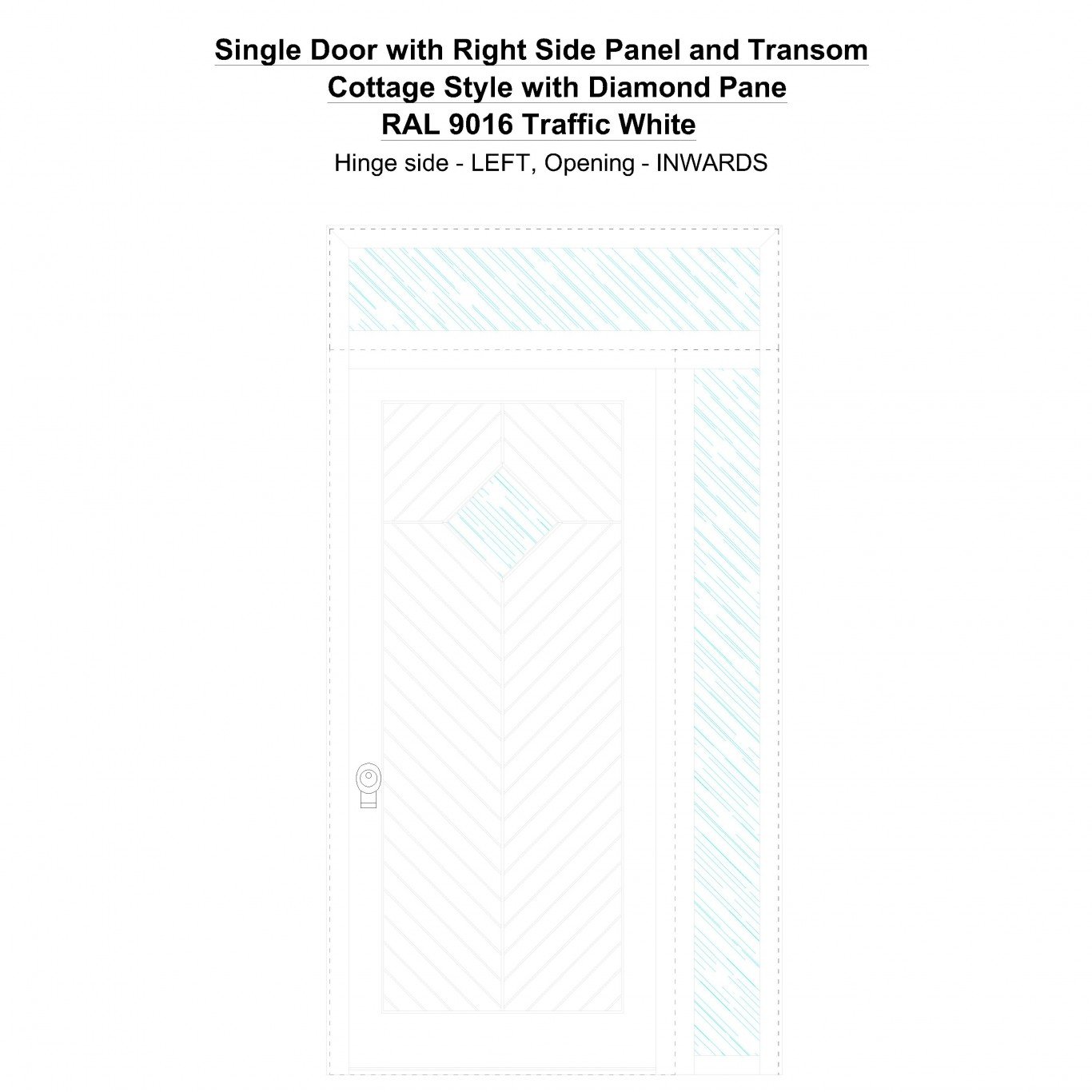 Single Door with Right Side Panel and Transom Cottage Style with Diamond Pane Traffic White Security Doors