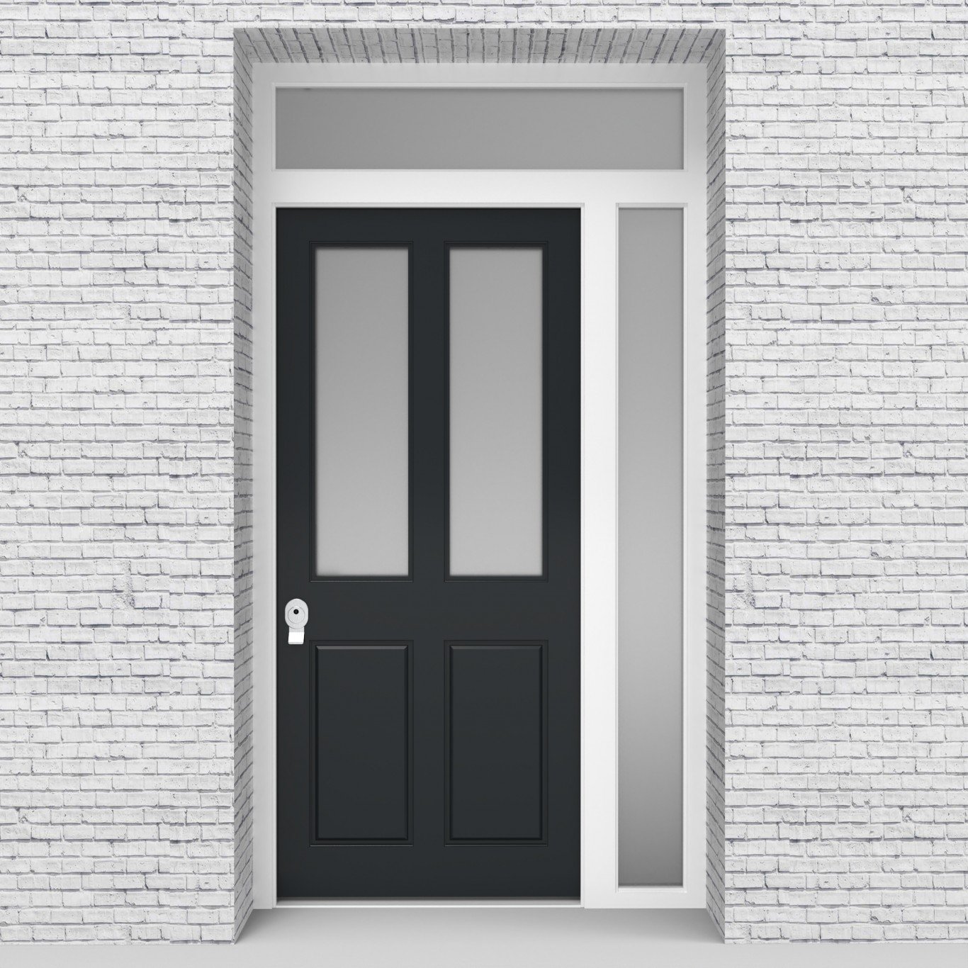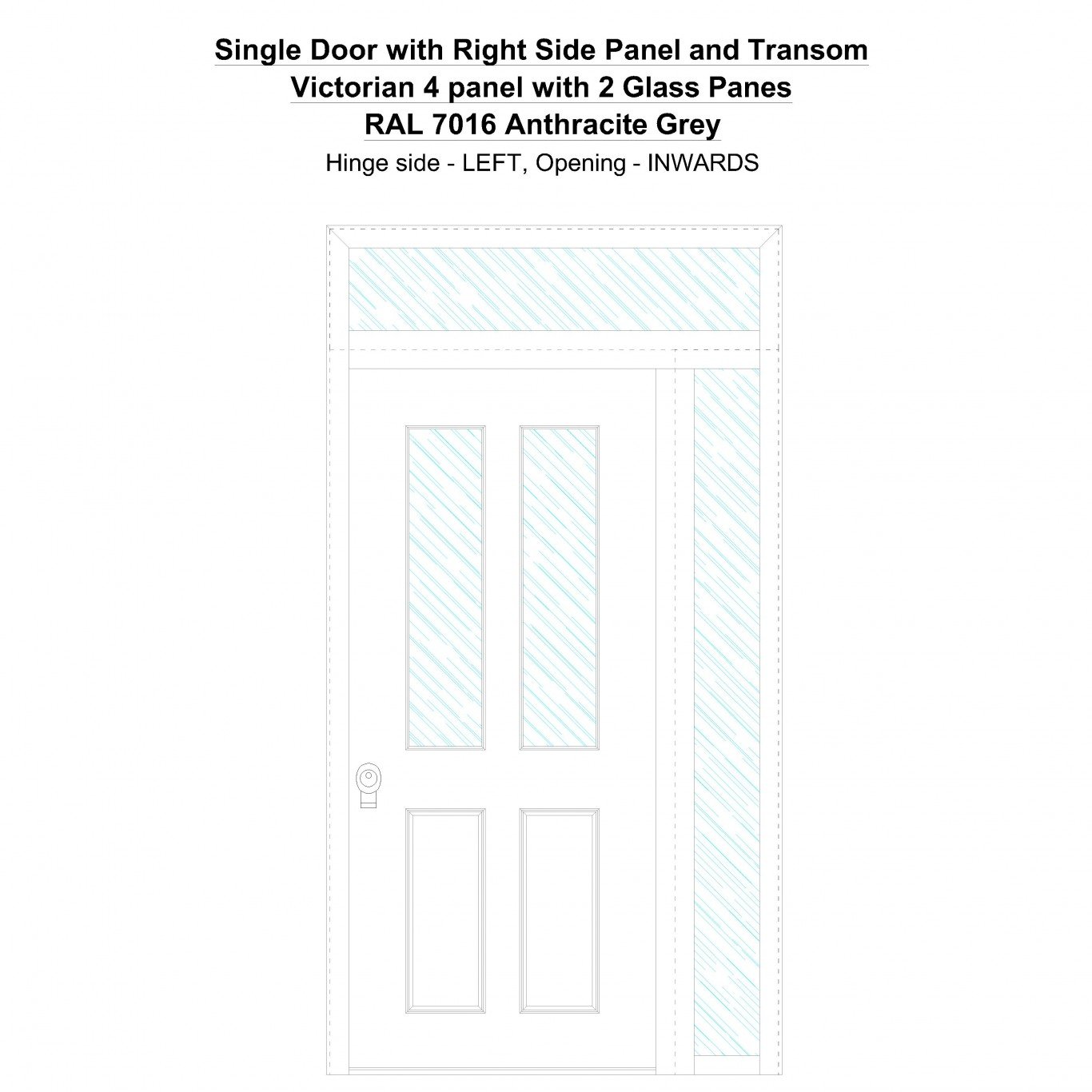 Single Door with Right Side Panel and Transom Victorian 4 panel with 2 Glass Panes Anthracite Grey Security Doors