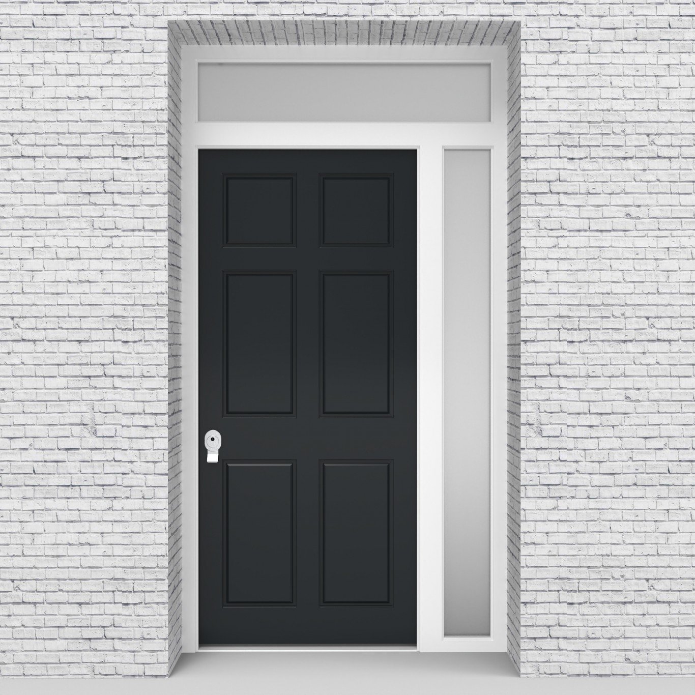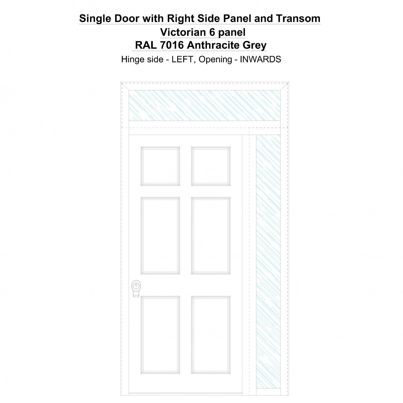 Single Door with Right Side Panel and Transom Victorian 6 panel Anthracite Grey Security Doors
