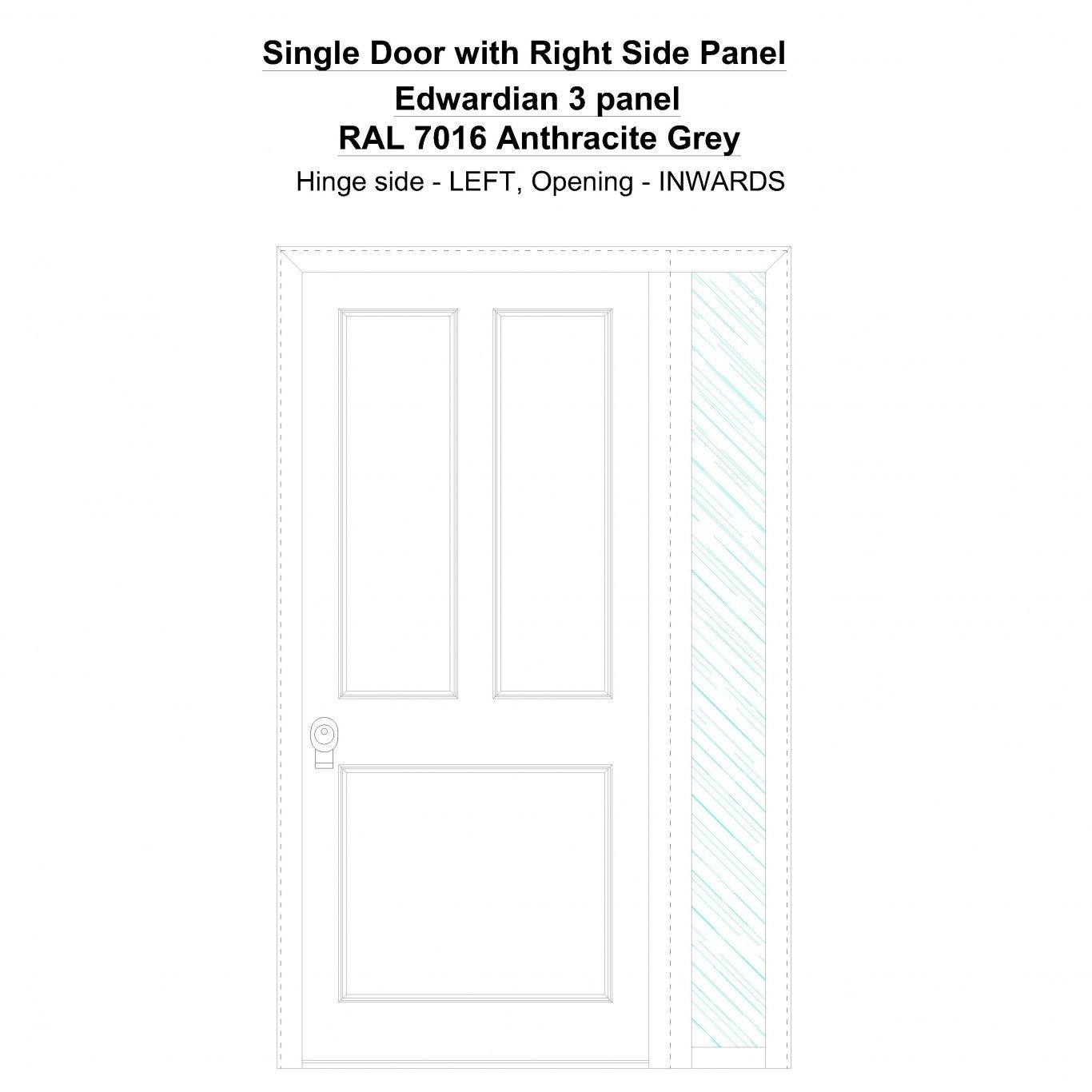 Single Door with Right Side Panel Edwardian 3 panel Anthracite Grey Security Doors