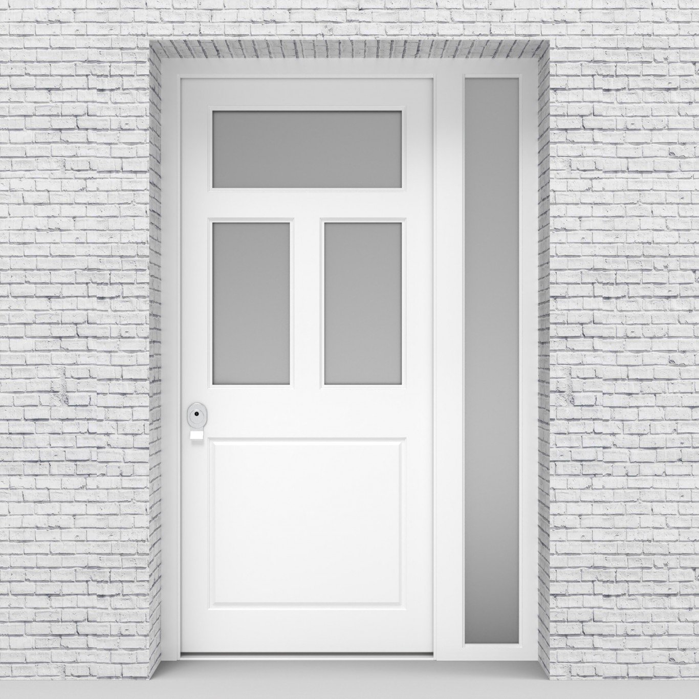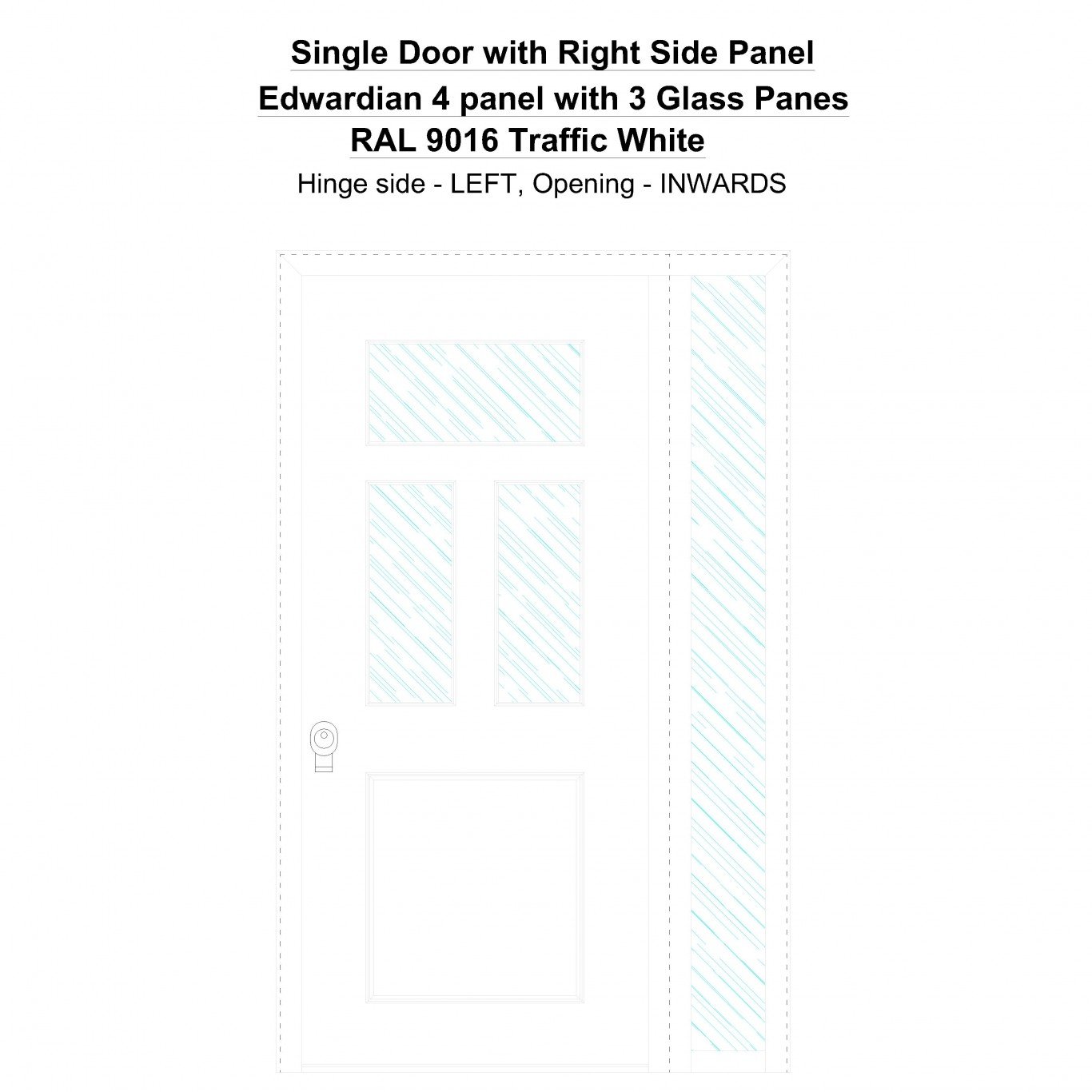 Single Door with Right Side Panel Edwardian 4 panel with 3 Glass Panes Traffic White Security Doors