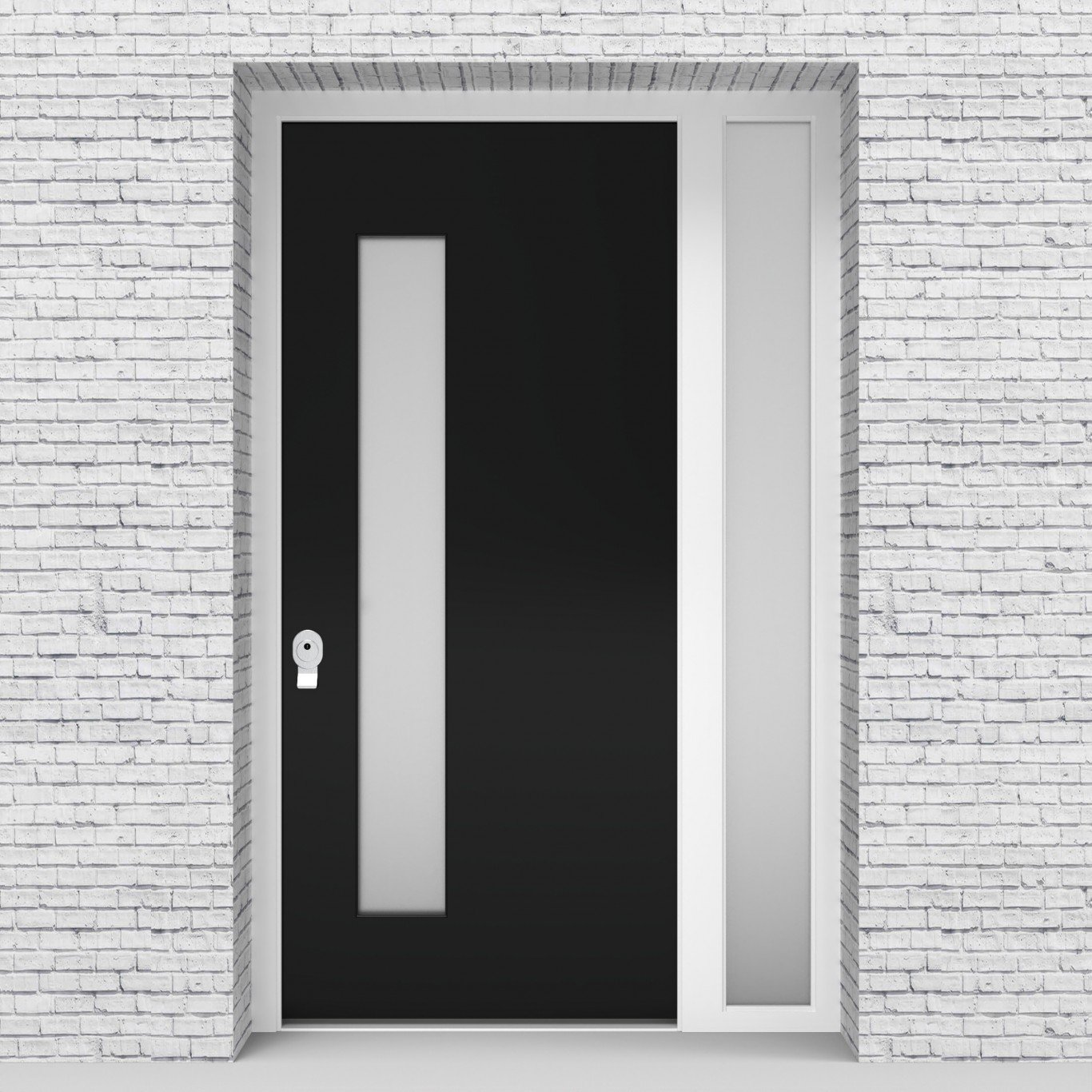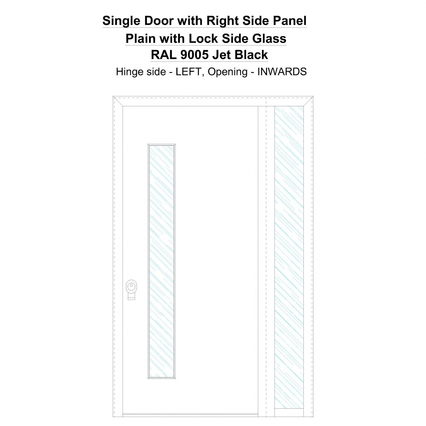 Single Door with Right Side Panel Plain with Lock Side Glass Jet Black Security Doors