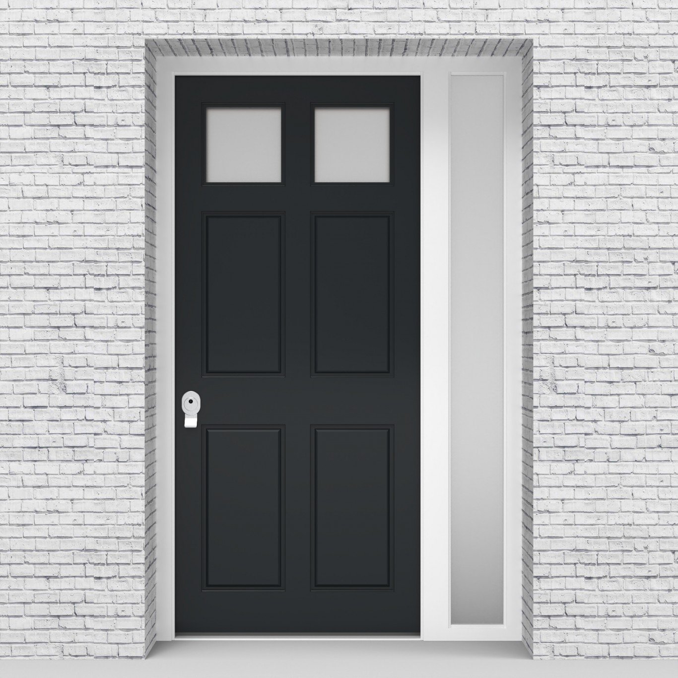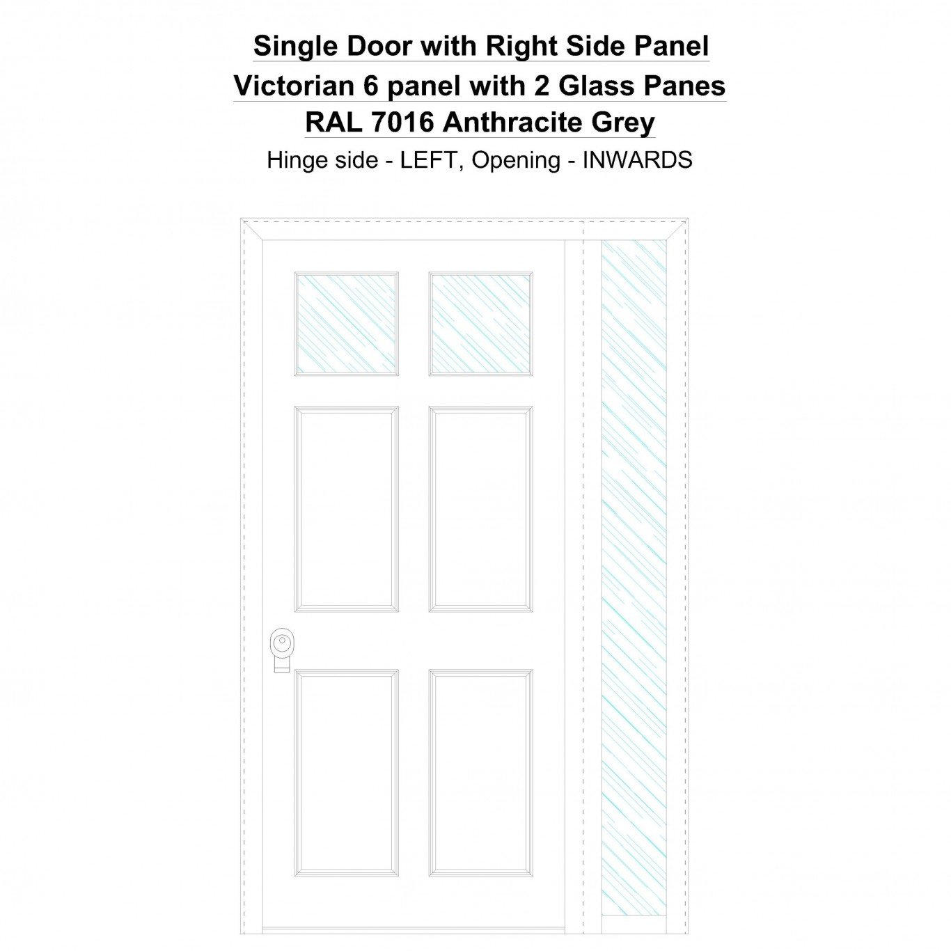 Single Door with Right Side Panel Victorian 6 panel with 2 Glass Panes Anthracite Grey Security Doors