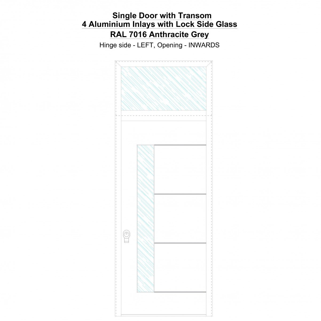 Single Door with Transom 4 Aluminium Inlays with Lock Side Glass Anthracite Grey Security Doors