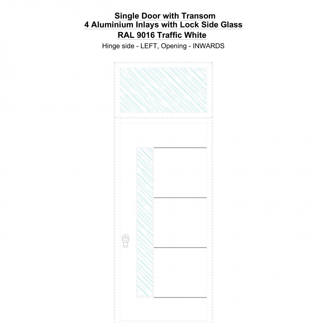 Single Door with Transom 4 Aluminium Inlays with Lock Side Glass Traffic White Security Doors