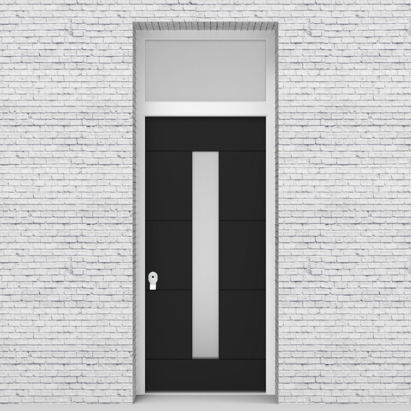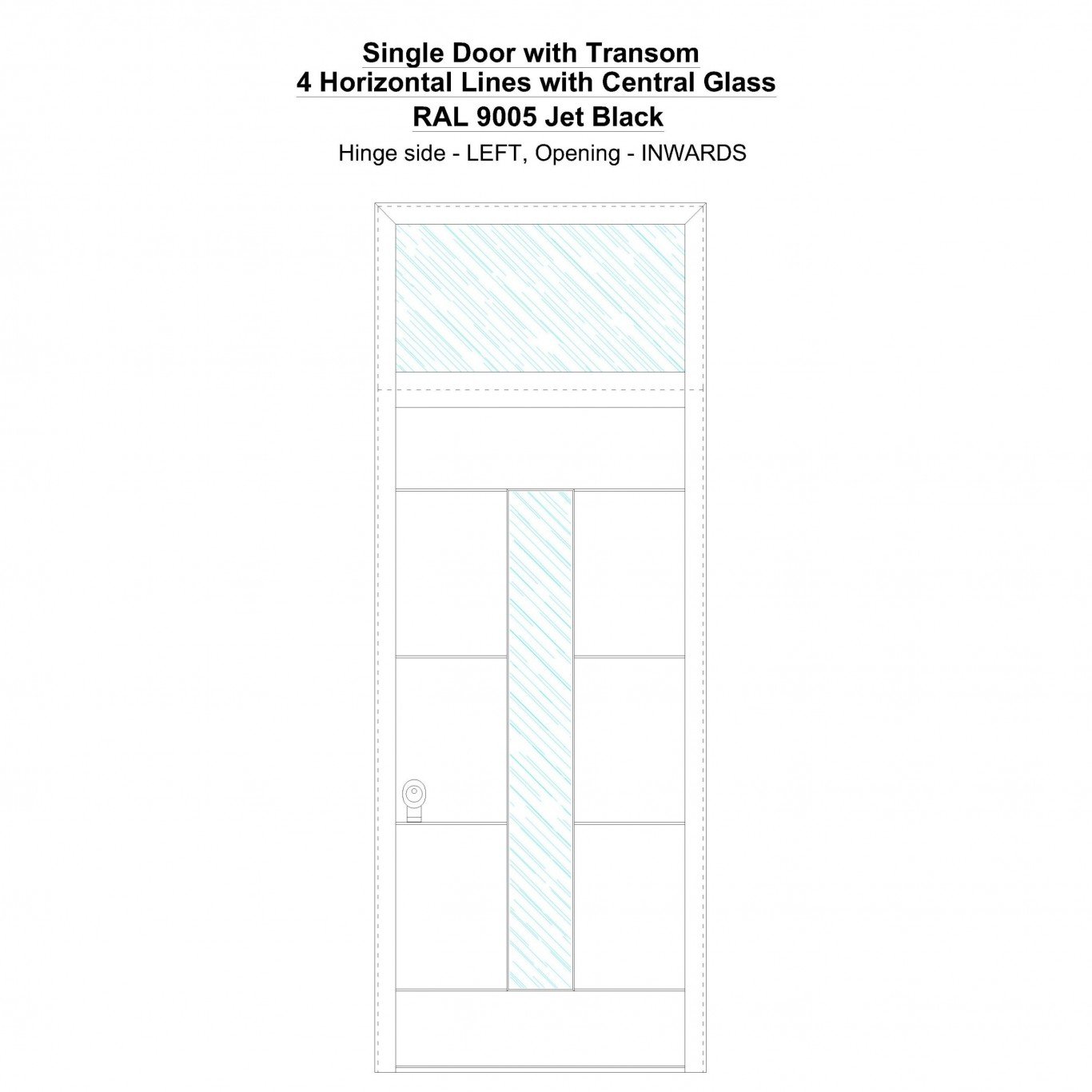 Single Door with Transom 4 Horizontal Lines with Central Glass Jet Black Security Doors