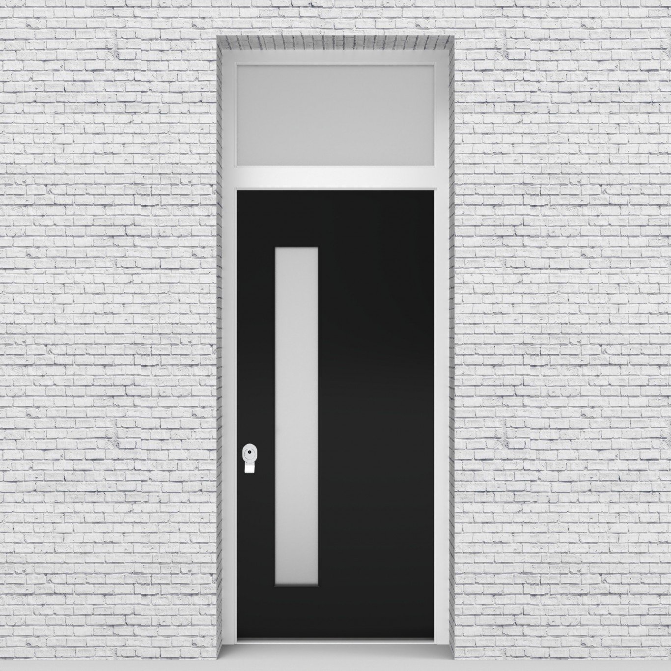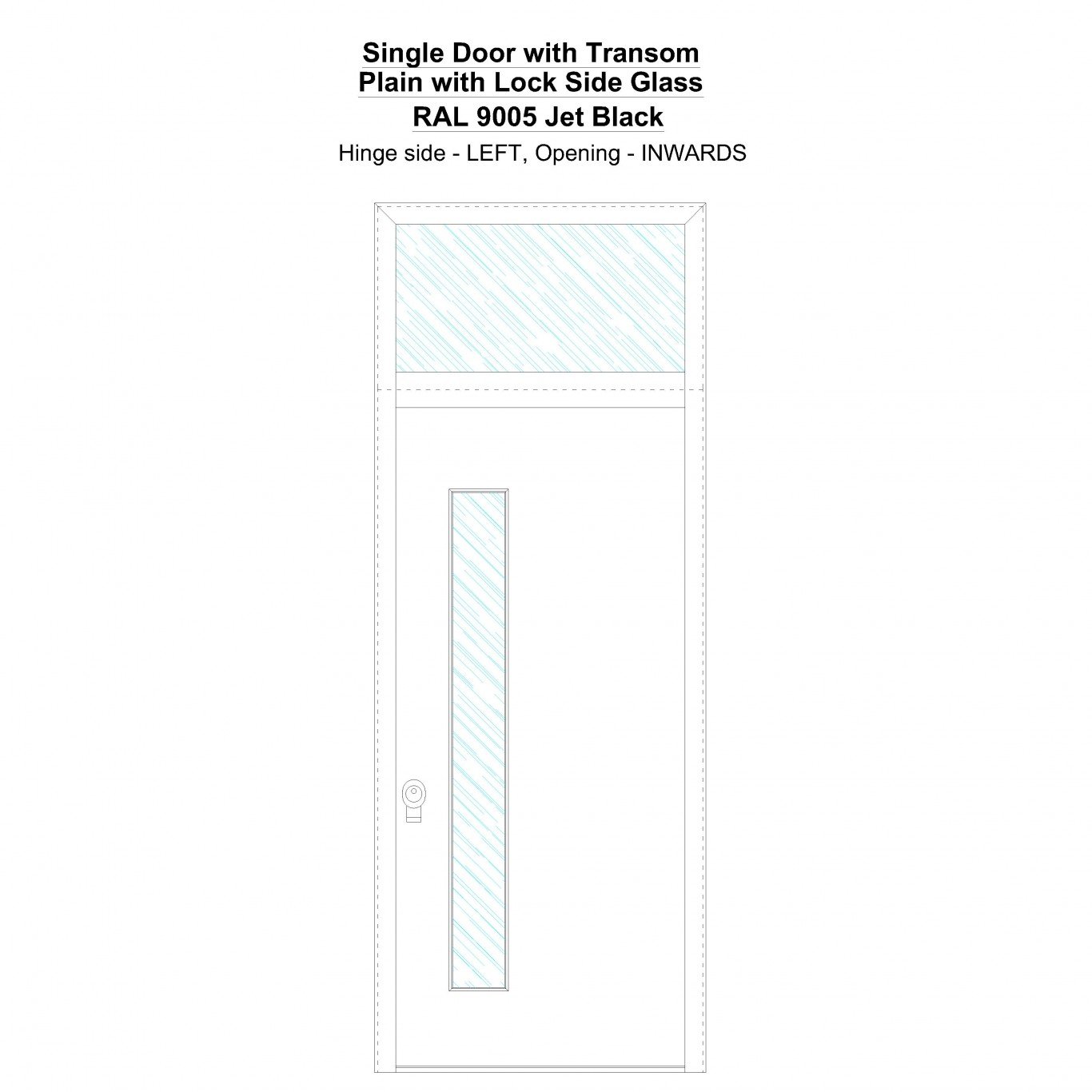 Single Door with Transom Plain with Lock Side Glass Jet Black Security Doors