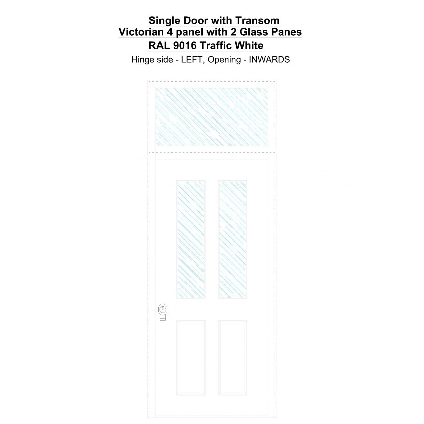 Single Door with Transom Victorian 4 panel with 2 Glass Panes Traffic White Security Doors