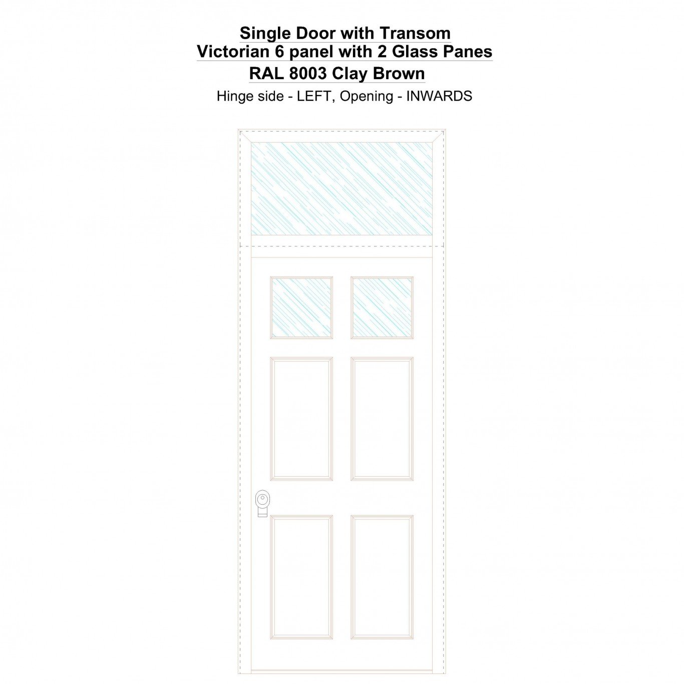 Single Door with Transom Victorian 6 panel with 2 Glass Panes Clay Brown Security Doors