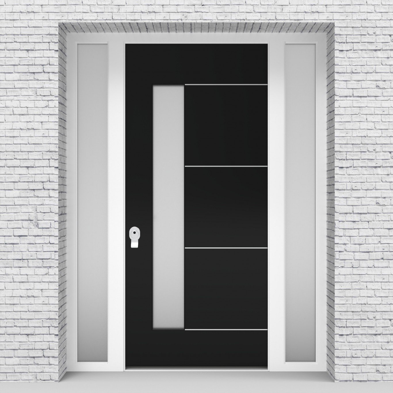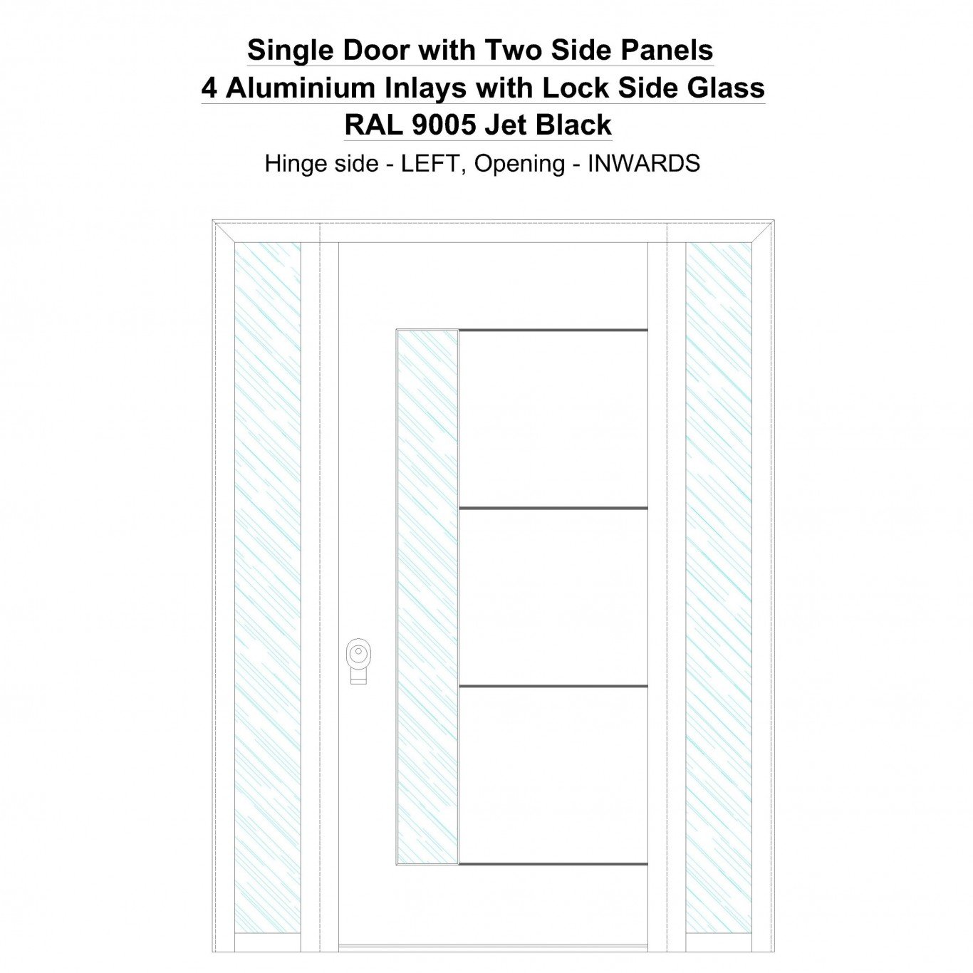 Single Door with Two Side Panels 4 Aluminium Inlays with Lock Side Glass Jet Black Security Doors
