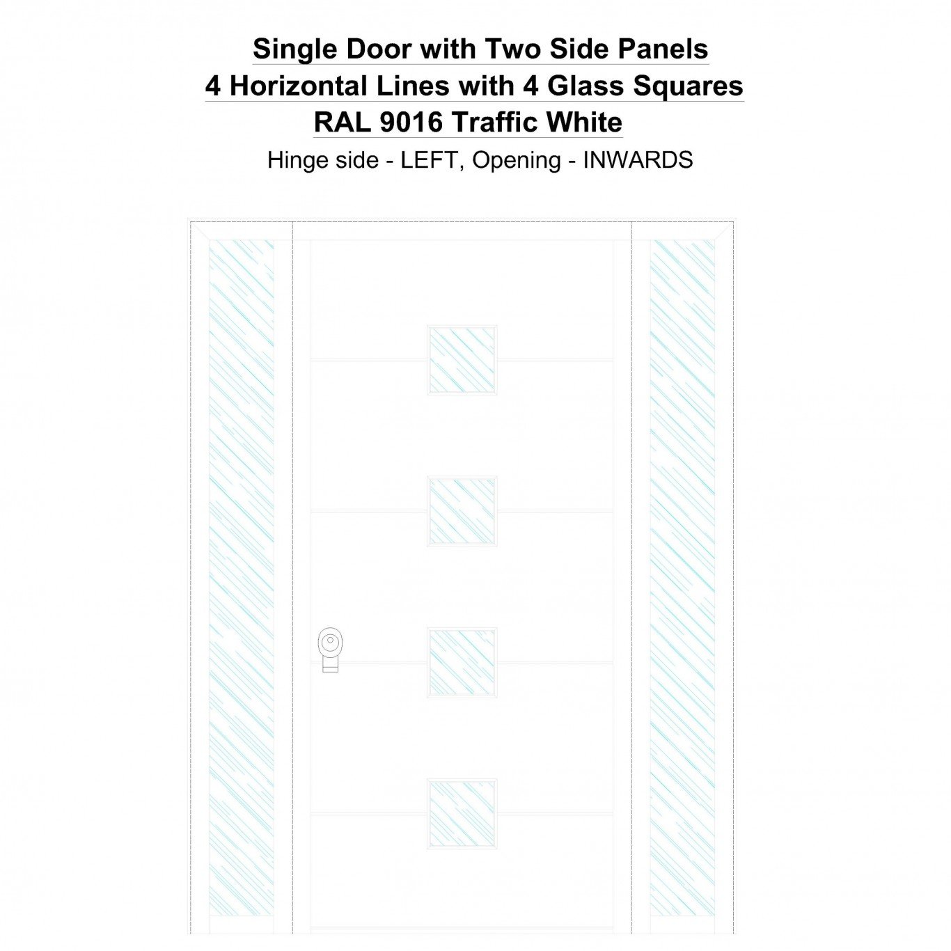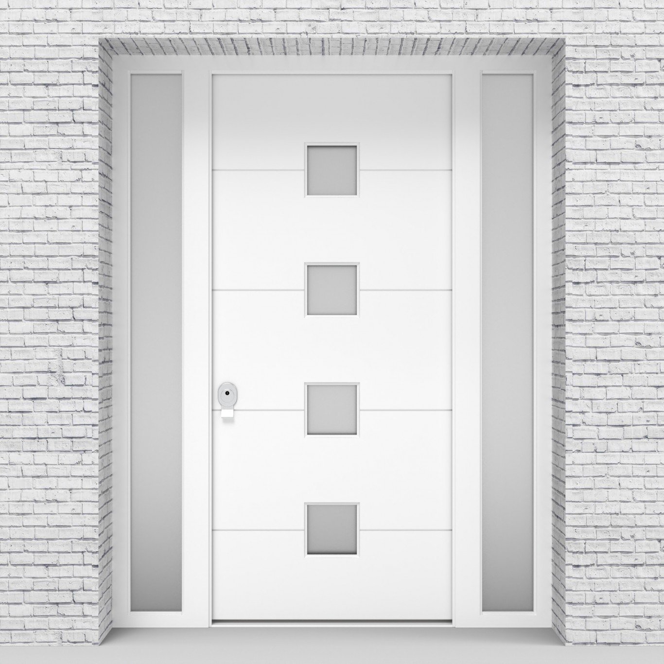 Single Door with Two Side Panels 4 Horizontal Lines with 4 Glass Squares Traffic White Security Doors