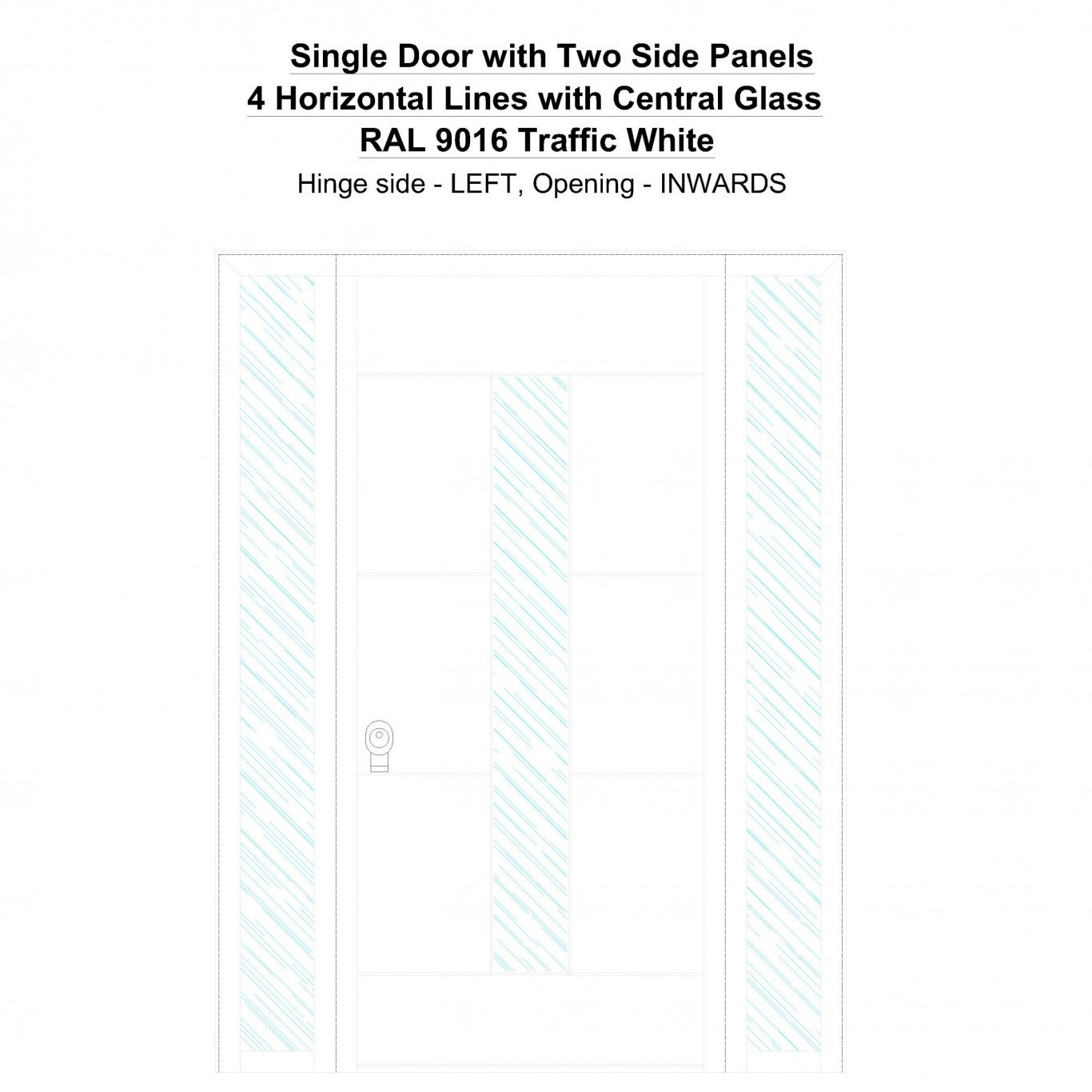 Single Door with Two Side Panels 4 Horizontal Lines with Central Glass Traffic White Security Doors