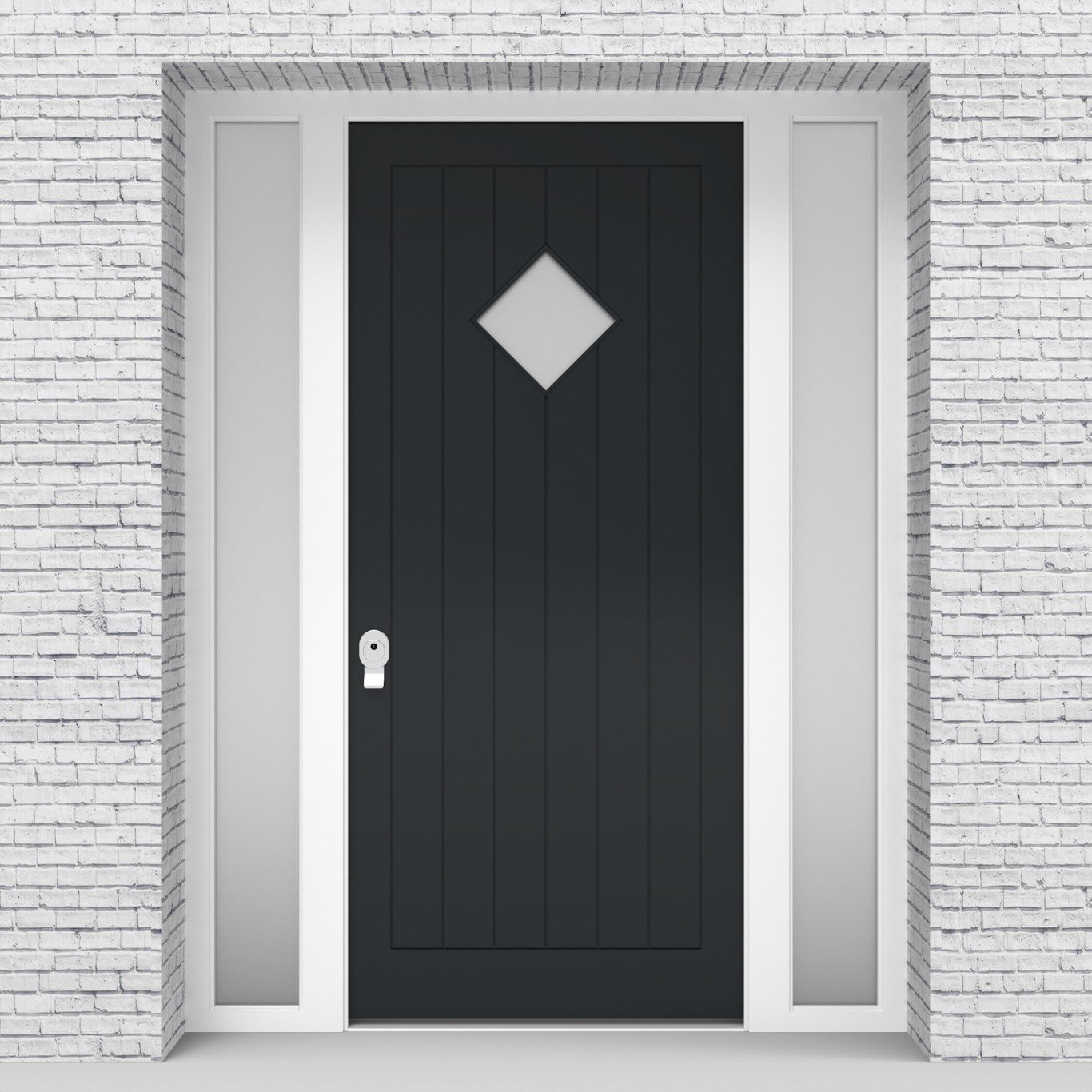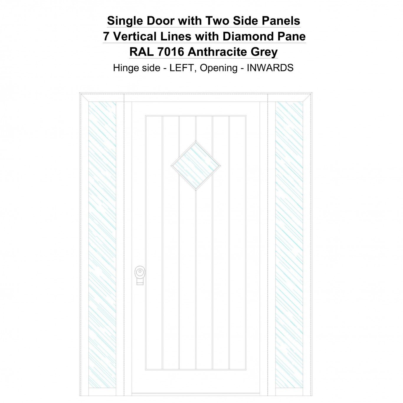 Single Door with Two Side Panels 7 Vertical Lines with Diamond Pane Anthracite Grey Security Doors
